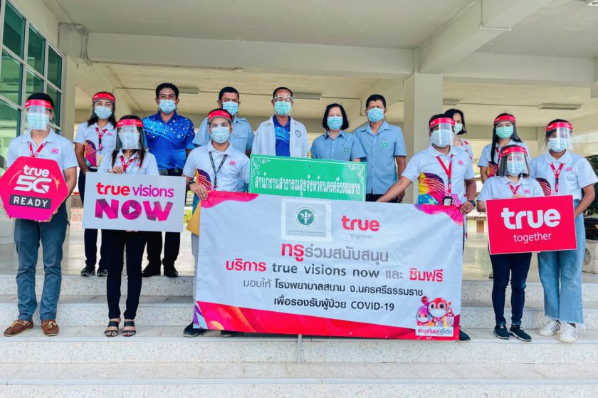 • โรงพยาบาลสนาม จังหวัดนราธิวาส โดย นางสาวจาริณี สังข์แก้ว นักวิชาการสาธารณสุขชำนาญการ พิเศษด้านส่งเสริมพัฒนา รับมอบจากนางสาวนริศรา ทิพย์กองลาศ ผู้บริหารพื้นที่ด้านฝ่ายขายประจำพื้นที่จังหวัดนราธิวาส บมจ.ทรู คอร์ปอเรชั่น