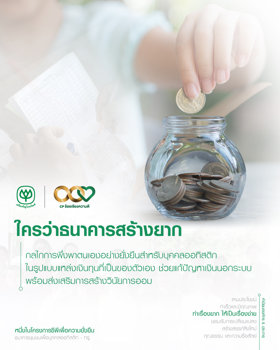 ค่านิยม 6 ประการ : ทำเรื่องยากให้เป็นเรื่องง่าย กับธนาคารชุมชนบุคคลออทิสติก (Community Bank for Autism)