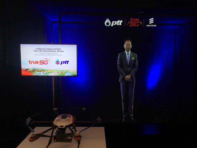สมเด็จพระกนิษฐาธิราชเจ้า กรมสมเด็จพระเทพรัตนราชสุดาฯ สยามบรมราชกุมารี ทรงเปิดอาคารศูนย์ปฏิบัติการอัจฉริยะของกลุ่ม ปตท. ในโครงการพัฒนาพื้นที่วังจันทร์วัลเลย์ จ.ระยอง ในการนี้ กลุ่มทรู โดย คุณอาณัติ เมฆไพบูลย์วัฒนา พร้อมด้วย คุณพิชิต ธันโยดม และคุณพิรุณ ไพรีพ่ายฤทธิ์ ร่วมรับเสด็จและถวายรายงานที่บูธนิทรรศการกลุ่มทรู ซึ่งจัดแสดง True5G Hologram 3 มิติ ถ่ายทอดภาพเสมือนจริงแบบเรียลไทม์ของผู้บริหารที่อยู่ในอีกสถานที่ เชื่อมต่อบนเครือข่ายอัจฉริยะ True5G นำเสนอ Use case “True5G Surveillance Drone” ที่กลุ่มทรูจะพัฒนาร่วมกับกลุ่ม ปตท. ช่วยเพิ่มความมั่นใจด้านความปลอดภัยของพื้นที่วังจันทร์วัลเลย์ กรณีเกิดเหตุฉุกเฉิน โดรนสามารถเตือนภัยเพื่อเข้าระงับเหตุได้ทันท่วงที เช่น กรณีเกิดไฟไหม้ หรือพบคนหรือสัตว์ป่าบุกรุกเข้าพื้นที่ ทั้งยังสามารถส่งอุปกรณ์ต่างๆ เช่น ชุดปฐมพยาบาลเบื้องต้น เข้าถึงพื้นที่ที่เข้าถึงยากได้อย่างรวดเร็ว