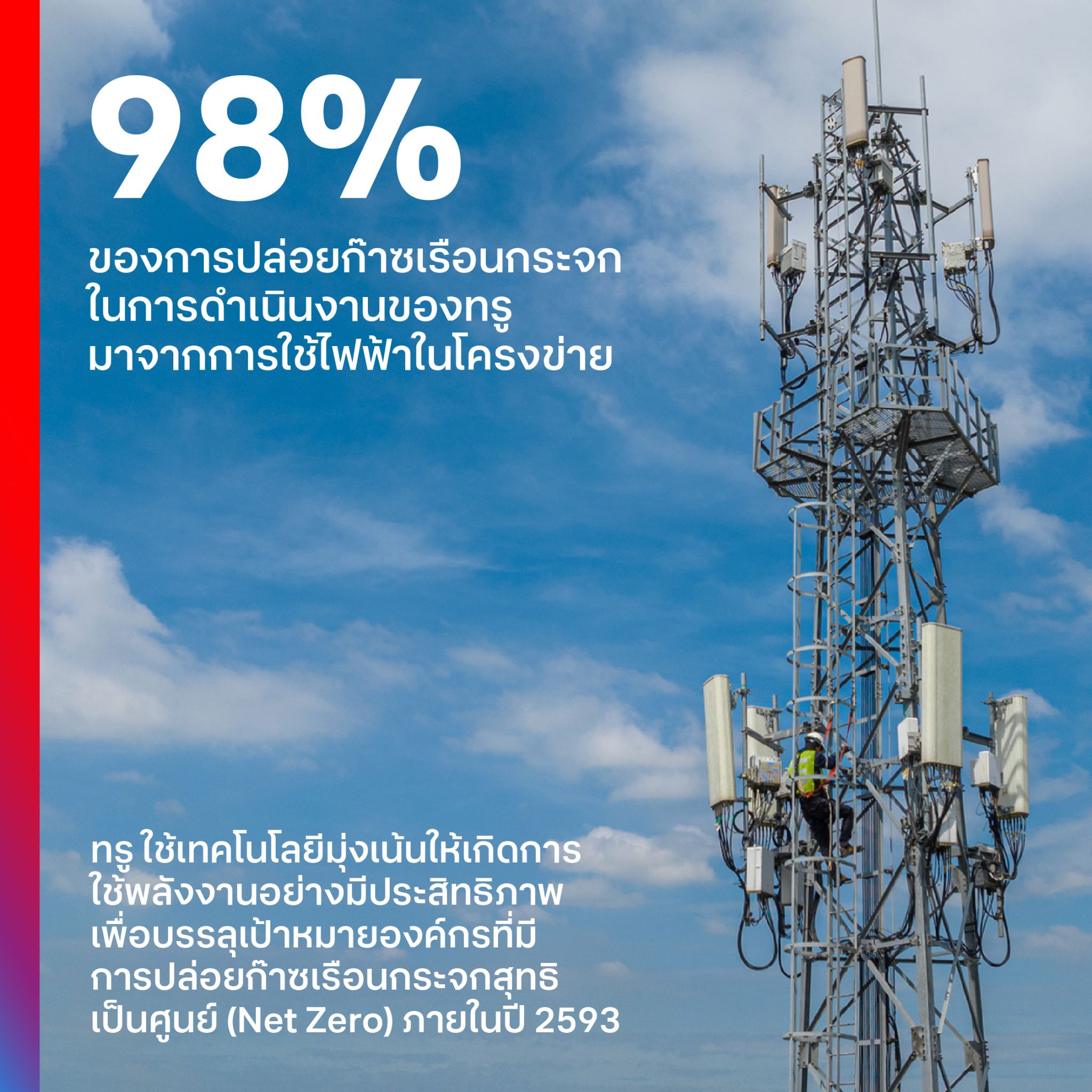 98% ของการปล่อยก๊าซเรือนกระจกในการดำเนินธุรกิจของทรู คอร์ปอเรชั่น มาจากการใช้ไฟฟ้าในโครงข่าย