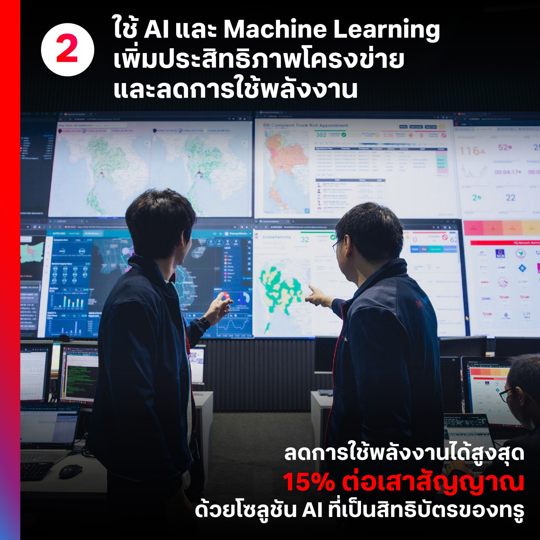- ใช้ AI และ Machine Learning เพิ่มประสิทธิภาพโครงข่าย และลดการใช้พลังงาน