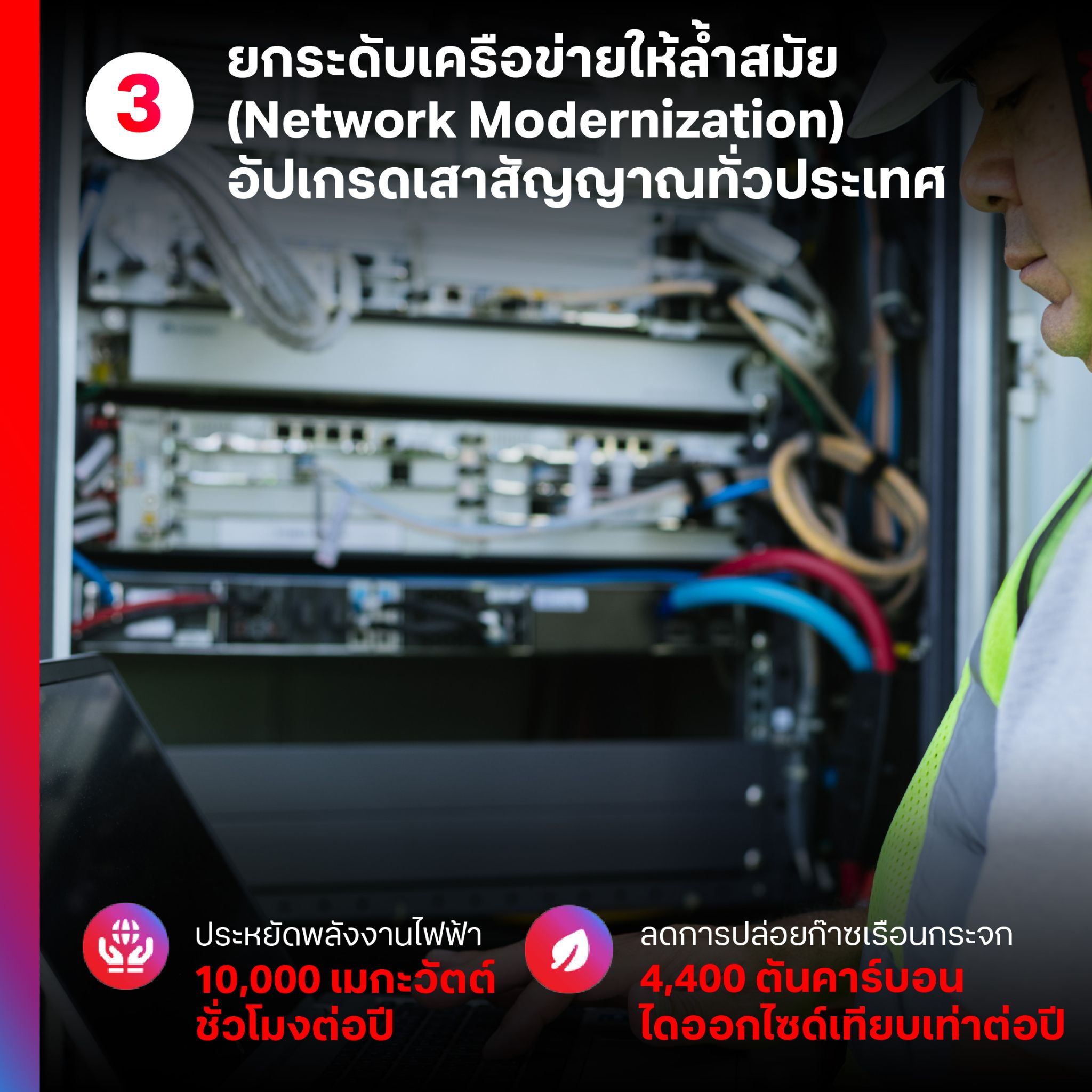 - ยกระดับเครือข่ายให้ล้ำสมัย (Network Modernization) อัปเกรดเสาสัญญาณทั่วประเทศ
