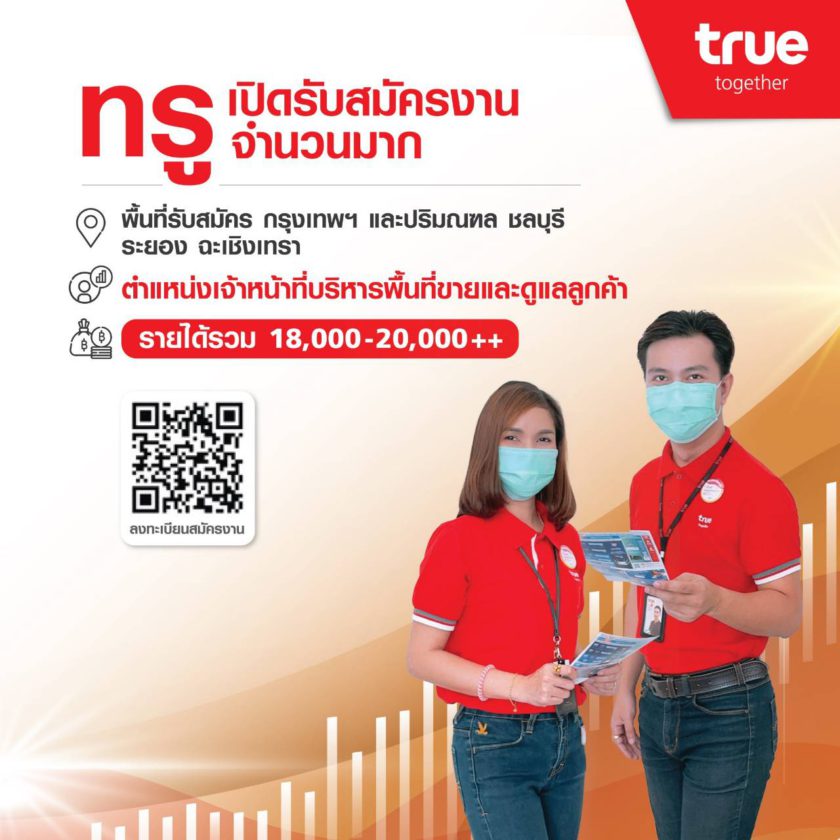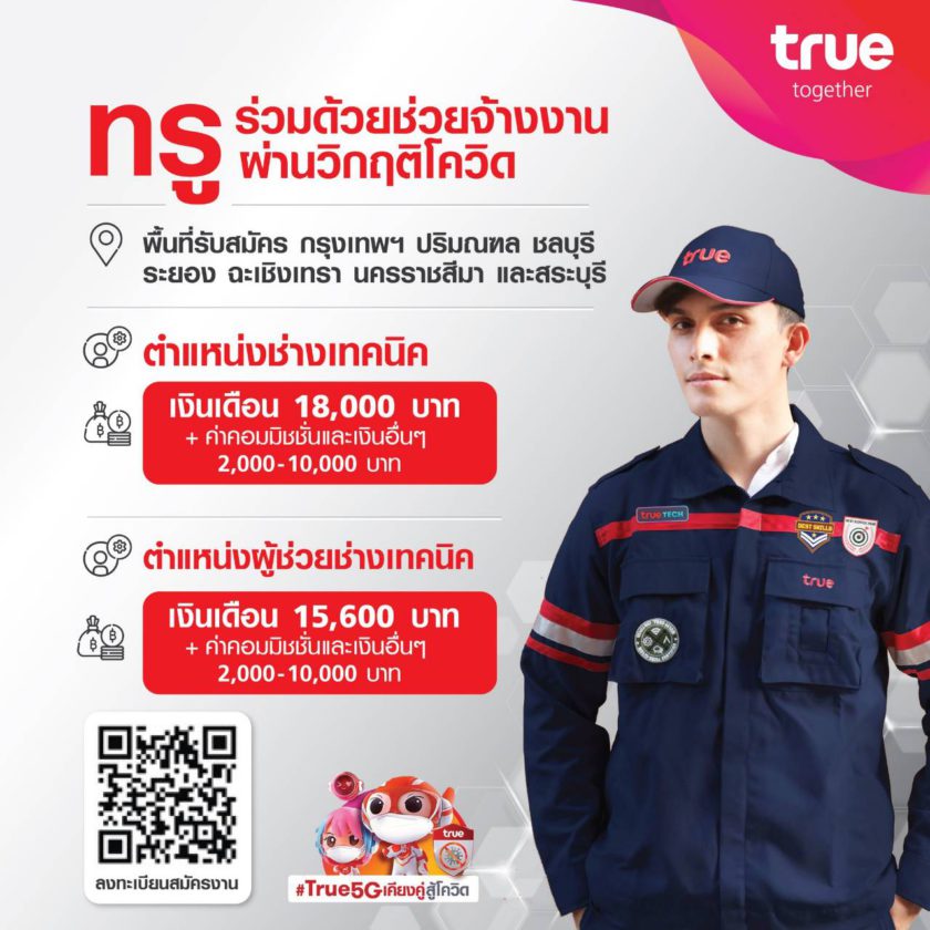 ท่ามกลางการกลับมาแพร่ระบาดของโควิด-19 ที่ทวีความรุนแรง ส่งผลให้เศรษฐกิจทั่วโลกได้รับผลกระทบมากมาย รวมถึงการจ้างงานของหลายองค์กรในประเทศไทย อย่างไรก็ตามกลุ่มทรู ยังคงยืนหยัด ในเจตนารมณ์เดิมที่พร้อมช่วยสนับสนุนให้คนไทยมีงานทำ มีความเป็นอยู่ที่ดีขึ้นด้วยการเดินหน้าสวนกระแสเปิดรับสมัครพนักงานกว่า 5,000 อัตรา ทั่วประเทศ อาทิ เจ้าหน้าที่บริหารพื้นที่ขายและดูแลลูกค้า ช่างเทคนิค ผู้ช่วยช่างเทคนิค Telesales Marketing และพนักงานประจำร้าน True Coffee GO