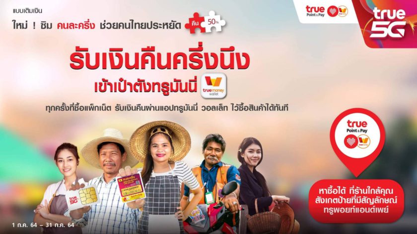 ทรูมูฟ เอช ขอร่วมเป็นส่วนหนึ่งในการช่วยให้คนไทยประหยัดค่าใช้จ่ายในสถานการณ์วิกฤตโควิด-19 ส่ง “ซิมคนละครึ่ง” ครั้งแรกในไทย ที่จะช่วยให้คนไทยได้ประหยัดอย่างแท้จริง เพียงเปิดซิมทรูมูฟ เอช แบบเติมเงิน แล้วซื้อแพ็กเน็ตไม่อั้น ที่มีให้เลือก 2 แบบ 1. เติมเงิน 150 บาท เล่นเน็ตไม่อั้น ความเร็ว 2 เมก นาน 30 วัน และ 2. เติมเงิน 200 บาท เล่นเน็ตไม่อั้น ความเร็ว 4 เมก นาน 30 วัน แถมฟรี WiFi ไม่อั้น ทั้ง 2 แพ็กเกจ และระบบจะต่ออายุอัตโนมัตินานสูงสุดถึง 1 ปี โดยลูกค้าจะได้ “รับเงินคืนครึ่งนึง” เข้าเป๋าตังทรูมันนี่ (แอปทรูมันนี่ วอลเล็ท) เพื่อใช้ซื้อสินค้า ของร้านค้าที่มีป้าย ทรู พอยท์แอนด์เพย์ ทั่วประเทศ