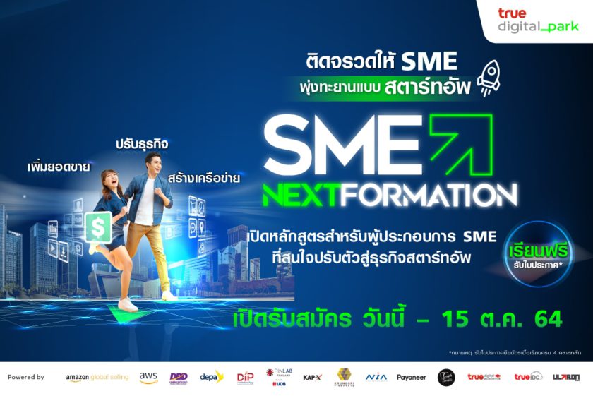 ผู้ที่สนใจเข้าร่วมโครงการ SME NEXTFORMATION by True Digital Park สมัครเรียนออนไลน์ฟรี! วันนี้ – 15 ตุลาคม 2564 รับสมัครจำนวนจำกัด ดูรายละเอียดเพิ่มเติมได้ที่ https://www.truedigitalpark.com/th/upskill-reskill/sme-nextformation