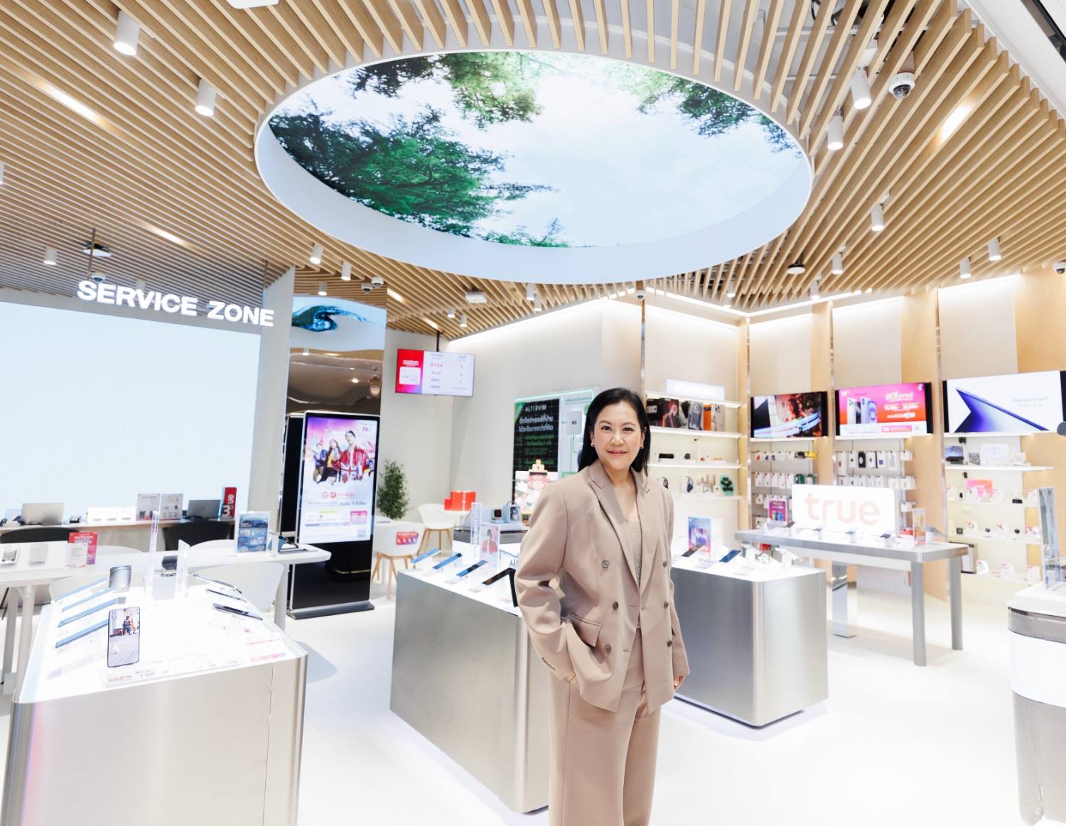นางสาวสุจิตรา อมิตรพ่าย หัวหน้าสายงานบริหารฝ่ายปฏิบัติการ ทรู รีเทลช็อป บริษัท ทรู คอร์ปอเรชั่น จำกัด (มหาชน) กล่าวว่า “ทรูแบรนดิ้งช้อป และทรูสเฟียร์สาขา Dusit Central Park แห่งใหม่นี้ มีเอ็กซคลูซีฟดีไซน์ การออกแบบพิเศษเพื่อสะท้อนไลฟ์สไตล์คนเมืองในอนาคต นำ AI ล้ำสมัยมาเป็นหัวใจหลักของประสบการณ์ ไม่ว่าจะเป็นการสร้างภาพถ่ายสุดครีเอทีฟด้วย Generative AI หรือการผสานโซลูชันพลังงานสะอาดที่ช่วยลดคาร์บอนฟุตพรินต์ ตอบโจทย์วิถีชีวิตคนยุคใหม่ที่ใส่ใจทั้งสุขภาพและสิ่งแวดล้อม พร้อมมอบความสะดวกสบายระดับเฟิร์สคลาส ด้วยเก้าอี้ปรับนอนสุดหรูที่ออกแบบตามหลักสรีรศาสตร์ เพื่อให้ทุกครั้งที่มาเยือนเป็นทั้งการผ่อนคลาย เติมแรงบันดาลใจ และค้นพบเทคโนโลยีที่ดูแลคุณตั้งแต่วันนี้จนถึงอนาคต”