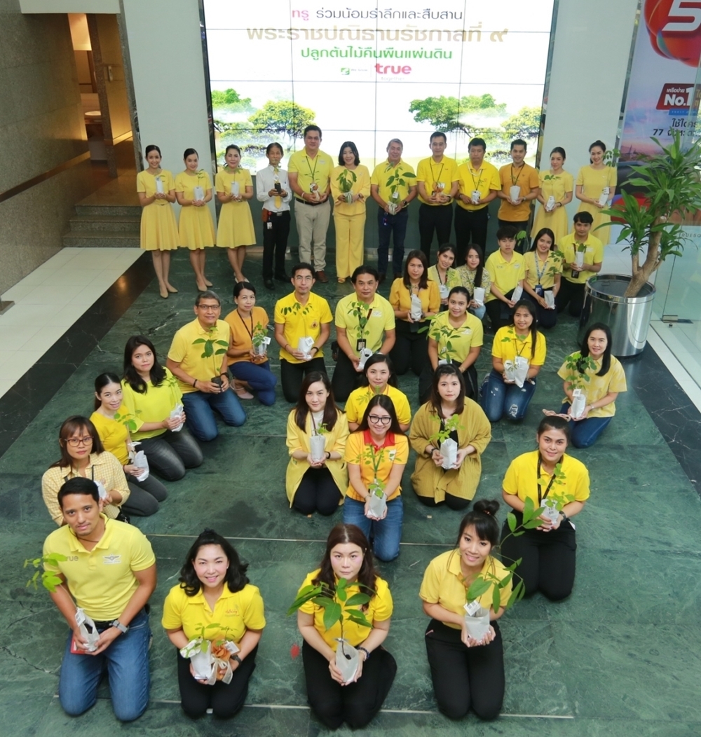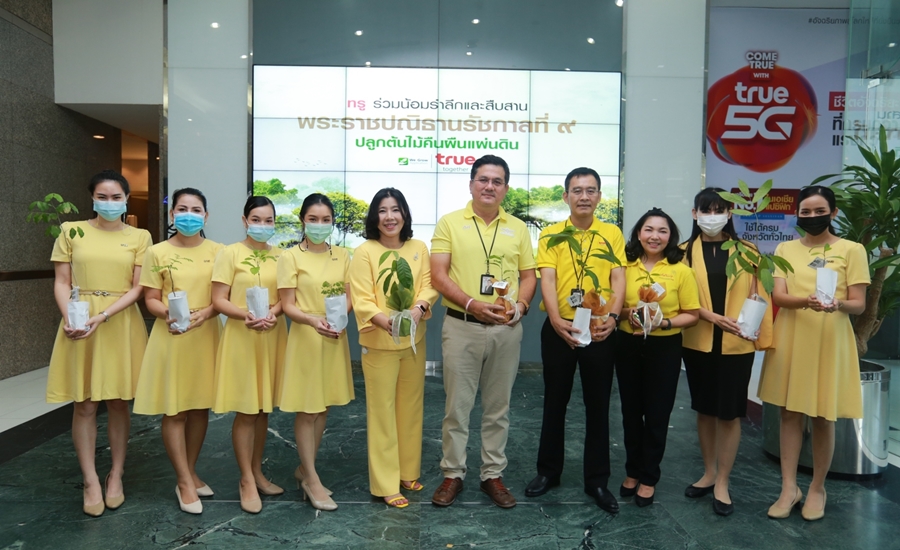 9 ตุลาคม 2563 เพื่อน้อมรำลึกถึงพระมหากรุณาธิคุณ และสืบสานพระราชปณิธานของพระบาทสมเด็จพระบรมชนกาธิเบศรมหาภูมิพลอดุลยเดชมหาราช บรมนาถบพิตร ในด้านการอนุรักษ์ฟื้นฟูทรัพยากรธรรมชาติและสิ่งแวดล้อม เนื่องในวันคล้ายวันสวรรคต 13 ตุลาคม 2563 ผู้บริหารและพนักงานกลุ่มทรู นำโดย คุณสฤษดิ์ จิณสิทธิ์ กรรมการผู้จัดการใหญ่ (ร่วม) พร้อมด้วย ดร.ธีระพล ถนอมศักดิ์ยุทธ หัวหน้าคณะผู้บริหาร ด้านนวัตกรรมและความยั่งยืน รวมพลังสวมเสื้อเหลืองร่วมน้อมรำลึกพร้อมสืบสานพระราชปณิธานปลูกต้นไม้คืนผืนแผ่นดิน รับต้นกล้าไม้มงคล 11 ชนิดจำนวน 500 ต้น เพื่อนำไปปลูกคืนผืนแผ่นดิน และแชร์ภาพแห่งความภูมิใจบน ‘We Grow’ ปลูกเพื่อความยั่งยืน แอปพลิเคชันที่นวัตกรทรู ร่วม สร้างสรรค์ขึ้นเพื่อสนับสนุนการปลูกต้นไม้ในสังคมยุคดิจิทัล ให้ติดตามอัพเดทการเจริญเติบโตได้อย่างต่อเนื่อง และเป็นคลังข้อมูลความรู้เรื่องต้นไม้ที่ใหญ่ที่สุด