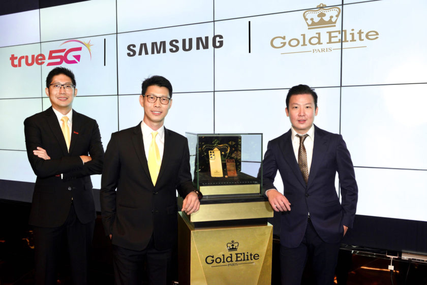 สามแบรนด์ดังชวนยกระดับความหรูหรา ฉลองเทศกาลตรุษจีน เปิดตัวสมาร์ทโฟนรุ่นลิมิเต็ดอิดิชั่น “Gold Elite Galaxy S21 Ultra 5G 24KT Gold” ที่ทำจากทองคำแท้ 99.9% โดย ทรู 5G เครือข่ายอัจฉริยะที่เร็วกว่า แรงกว่า รายแรก รายเดียว ที่ครบสุดทุกย่านความถี่ โดย คุณพิชิต ธันโยดม หัวหน้าคณะผู้บริหารด้านธุรกิจองค์กร, มร.จัสติน อัง รองหัวหน้าคณะผู้บริหารกลุ่ม ด้านการพาณิชย์ และคุณณัฏฐา พสุพัฒน์ ผู้อำนวยการ ธุรกิจโมบายล์ บมจ.ทรู คอร์ปอเรชั่น ร่วมกับ ซัมซุง ผู้นำด้านนวัตกรรมและเทคโนโลยีระดับโลก โดย ดร. มารุต มณีสถิตย์ หัวหน้ากลุ่มธุรกิจลูกค้าองค์กร โทรคมนาคมและไอที บริษัท ไทยซัมซุง อิเลคโทรนิคส์ จำกัด และ โกลด์ อีลิท ปารีส (Gold Elite Paris) ผู้นำด้านการผลิตโทรศัพท์มือถือทองคำระดับโลก โดย คุณสุทธิเกียรติ กิตติภัทรากุล กรรมการบริหาร บริษัท โกลด์ อีลิท ปารีส (ประเทศไทย) จำกัด
