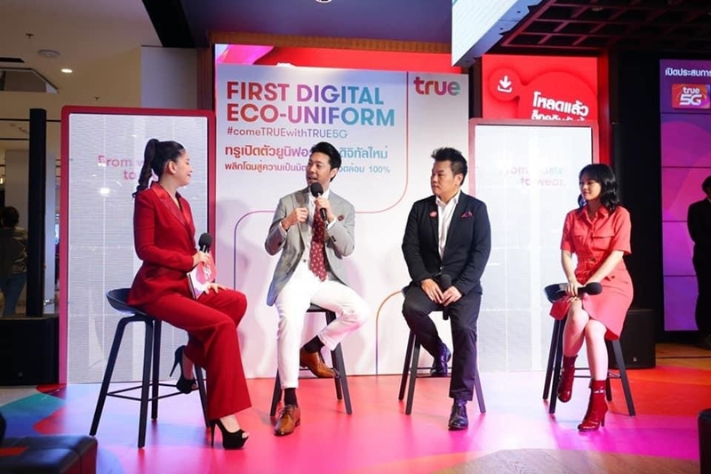 คุณโอลิเวอร์ กิตติพงษ์ วีระเตชะ หัวหน้าคณะผู้บริหารด้านแบรนด์และการสื่อสาร ชูภาพผู้นำดิจิทัลไลฟ์สไตล์ และเทคคอมปานีที่รับผิดชอบต่อสังคม เปิดโฉม “ยูนิฟอร์มดิจิทัลรักษ์โลก” ที่สะท้อนความใส่ใจต่อสิ่งแวดล้อมผ่านชุดพนักงานที่ให้บริการลูกค้าในทรูช็อป ด้วยแนวคิด “From Waste to Wear” รังสรรค์เสื้ออีโคแฟชั่นจากเส้นใยที่เป็นมิตรต่อสิ่งแวดล้อม 100 % ผลิตจากส่วนผสมอันลงตัวของพลาสติกรีไซเคิล (PET) และเส้นใยฝ้ายธรรมชาติ โดยดีไซน์เนอร์ชื่อดัง แบงค์-ปรีดากร เมธเกรียงชัย” แห่ง RAMS (The Personal Style Creatives) ดีไซเนอร์ไทยที่เข้าใจการสื่อสารแบรนด์ผ่านเสื้อผ้าเป็นอย่างดี