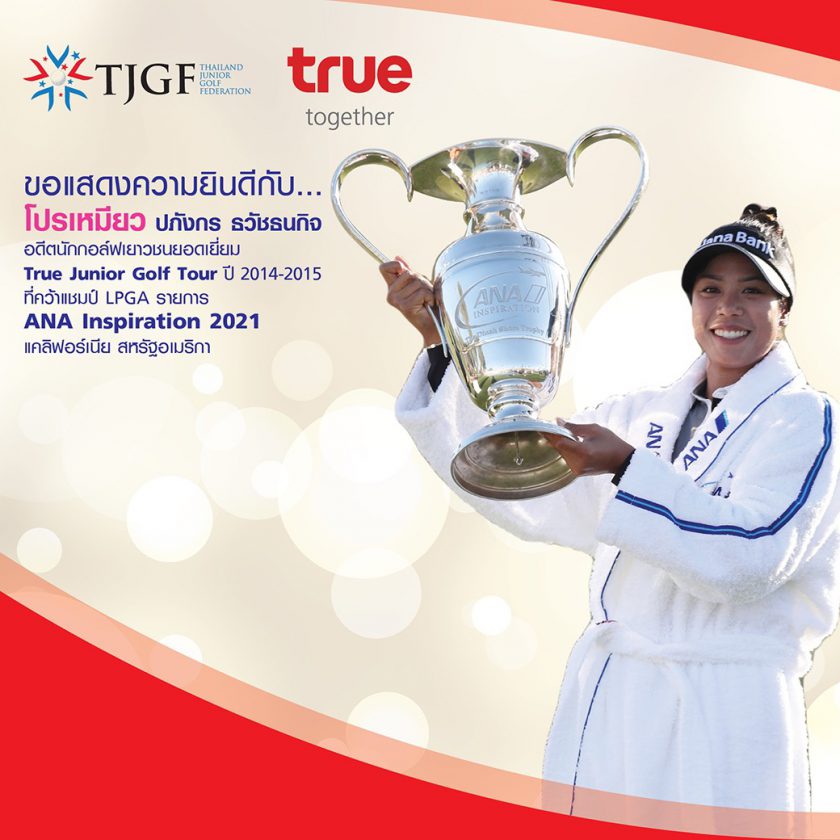 ทรู ขอแสดงความยินดีกับ… ‘โปรเหมียว’ ปภังกร ธวัชธนกิจ อดีตนักกอล์ฟเยาวชนหญิงยอดเยี่ยม ทรู จูเนียร์ กอล์ฟ ทัวร์ 2014-2015 ที่คว้าแชมป์ LPGA รายการ ANA Inspiration 2021 พร้อมรับเงินรางวัล 465,000 เหรียญสหรัฐ หรือประมาณ 15 ล้านบาท ซึ่งเป็นแชมป์แรก และเมเจอร์แรกในชีวิต
