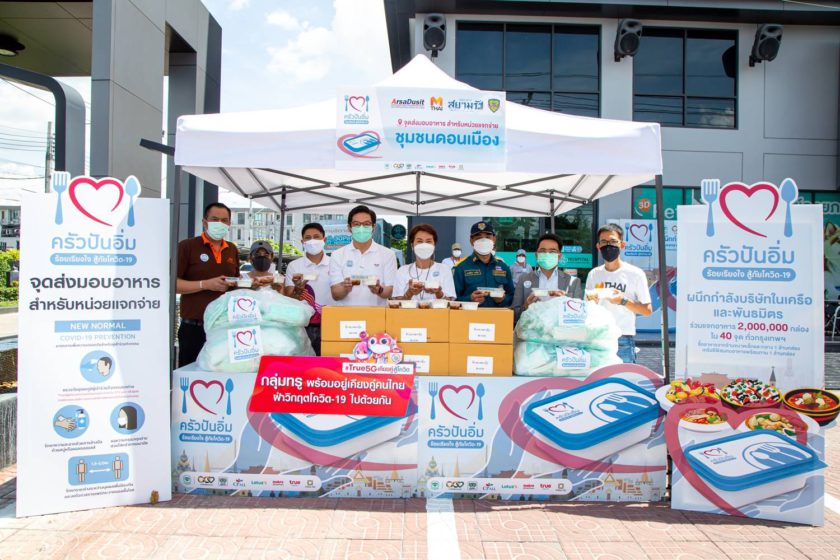 ทั้งนี้ โครงการครัวปันอิ่ม ร้อยเรียงความดี สู้ภัยโควิด เป็นการผนึกกำลังของเครือเจริญโภคภัณฑ์ ร่วมกับพันธมิตรทุกภาคส่วนกว่า 100 องค์กร ทั้งมูลนิธิ กลุ่มจิตอาสา ภาคประชาสังคม และองค์กรเอกชน เพื่อกระจายอาหารสู่ชุมชนใน 40 จุดทั่วกรุงเทพมหานครและปริมณฑล ซึ่งชุมชนดอนเมือง เป็นจุดแรกใน 5 จุดที่กลุ่มทรูดูแลรับผิดชอบ ร่วมกับพันธมิตร ส่งมอบอาหารวันละ 1,000 กล่อง แบ่งเป็นอาหารจากบมจ. เจริญโภคภัณฑ์อาหาร (ซีพีเอฟ) วันละ 500 กล่อง และอาหารจากร้านค้าในชุมชนใกล้เคียง วันละ 500 กล่อง เพื่อส่งเสริมให้ผู้ประกอบการท้องถิ่นมีรายได้ รวมถึงมอบหน้ากากอนามัยซีพี จำนวนวันละ 3,000 ชิ้น เป็นระยะเวลาต่อเนื่องนาน 2 เดือน ซึ่งการสนับสนุนดังกล่าว สะท้อนถึงความตั้งใจของกลุ่มทรู ที่ต้องการเคียงคู่คนไทย ให้ผ่านพ้นวิกฤตโควิด-19 ไปด้วยกัน