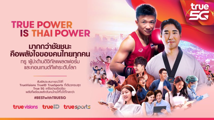 เพราะพลังที่แท้จริงคือ พลังใจของคนไทยทุกคน “TRUE POWER IS THAI POWER”….ทรู ขอขอบคุณทุกความพยายาม ทุกพลังใจที่เชื่อมโยงส่งต่อถึงกันและกัน จนทำให้วันนี้คนไทยได้มีความสุขอีกครั้ง กับชัยชนะประวัติศาสตร์ในการแข่งขัน โอลิมปิก เกมส์ 2020 สะท้อนชัด ทุกสิ่งเป็นจริงได้ เมื่อมีกันและกัน ตามความเชื่อกลุ่มทรู ผู้นำดิจิทัลไลฟ์สไตล์ พร้อมประกาศดึงพลัง 2 ฮีโร่โอลิมปิก 2020 “น้องแต้ว” กำปั้นแกร่งสาวไทย เจ้าของเหรียญโอลิมปิกแรกกีฬามวยสากลสมัครเล่นหญิง และ “โค้ชเช” โค้ชหัวใจไทยผู้อยู่เบื้องหลังความสำเร็จของวงการกีฬาเทควันโดไทยเกือบ 20 ปี เพื่อส่งต่อแรงบันดาลใจ สร้างพลังบวกแบบฉบับนักสู้ เคียงคู่คนไทยไปด้วยกัน ตอกย้ำความมุ่งมั่นของกลุ่มทรูที่ไม่เคยหยุดนิ่ง สร้างสรรค์นวัตกรรมเทคโนโลยีดิจิทัลเพื่อประโยชน์สูงสุดของคนไทยและประเทศ รวมถึงความเป็น King of Sports ที่เป็นที่สุดของกีฬา ทั้งปั้นเยาวชนสู่เส้นทางอาชีพนักกีฬา ส่งเสริมคนไทยก้าวขึ้นเป็นนักกีฬาระดับสากล และรวบรวมหลากหลายคอนเทนต์ประเภทกีฬาฮิต ครบที่สุดในไทย เพื่อเติมเต็มความสุขให้คนไทยรับชมได้ ผ่านทุกแพลตฟอร์มชั้นนำของกลุ่มทรู ด้วยเครือข่ายอัจฉริยะทรู 5G ที่เร็วกว่า แรงกว่า