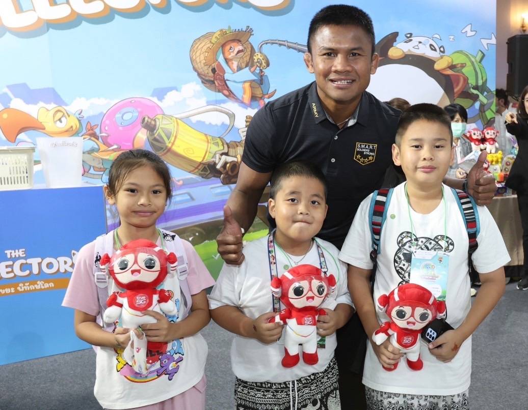 และอีกหนึ่งไฮไลท์กิจกรรมส่งเสริมซอฟต์พาวเวอร์ด้านกีฬา โดย กำปั้นขวัญใจชาวไทย บัวขาว บัญชาเมฆ ที่มาร่วม สร้างแรงบันดาลใจถ่ายทอดมวยไทยสู่เยาวชน สร้างความฝันเด็กๆที่อยากฝึกมวยไทย นอกจากนี้ น้องๆยังได้เพลิดเพลินกับหุ่นยนต์มหัศจรรย์ Pepper Robot ที่ต้อนรับทักทายถ่ายรูปให้เด็กๆ ที่ลานกิจกรรมทรูปลูกปัญญา อีกทั้งยังมีของขวัญรางวัลที่ส่งความสุขให้น้องๆอย่างต่อเนื่อง รวมไปถึงการแสดงความบันเทิงบนเวทีที่สร้างรอยยิ้มและเสียงหัวเราะให้เด็กๆตลอดงาน