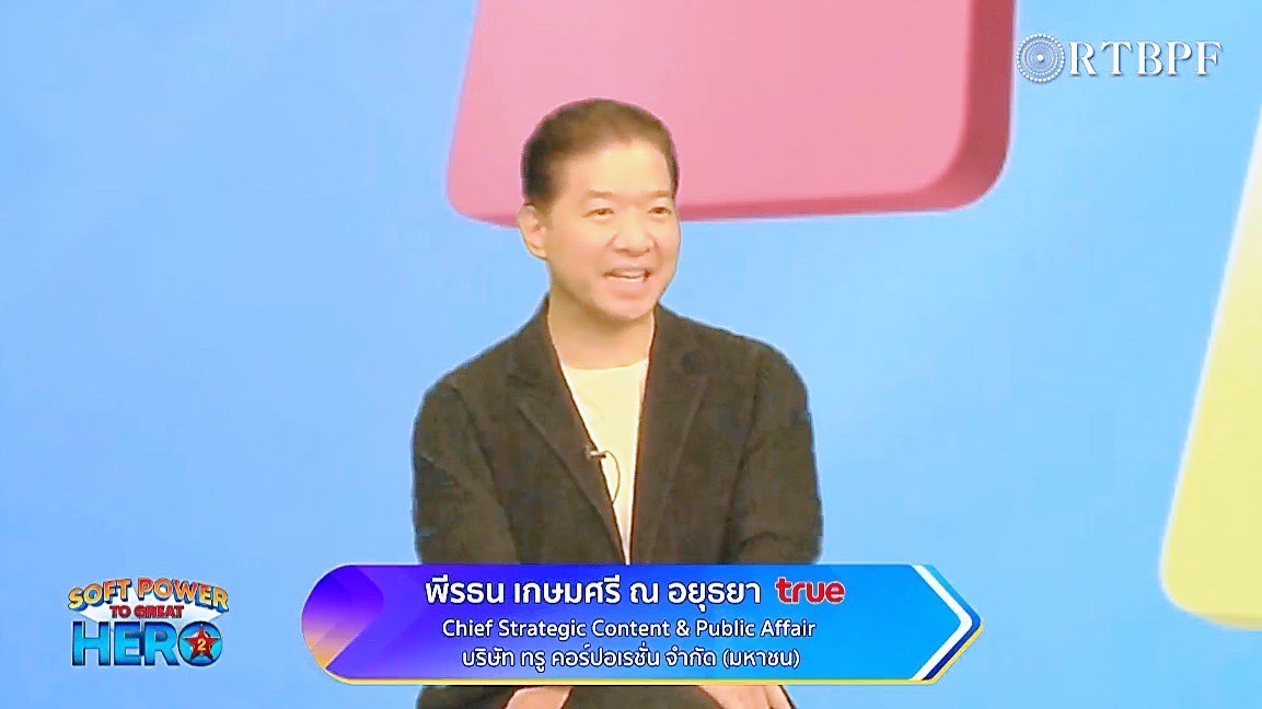 คุณพีรธน กล่าวว่า “ด้วยศักยภาพแพลตฟอร์มที่เข้าถึงผู้บริโภคมากที่สุดในประเทศ ทรู คอร์ปอเรชั่น ในฐานะองค์กรไทย มีความตั้งใจที่จะสนับสนุนอุตสาหกรรมคอนเทนต์ให้เติบโตอย่างยั่งยืน ดังนั้น Soft Power ถือเป็นเรื่องที่สำคัญที่สุด ซึ่งก่อนการสร้างคอนเทนต์ที่ดี จะต้องมีขั้นตอนสำคัญ ได้แก่ การเพิ่มศักยภาพของบุคลากรไทยให้สามารถแข่งขันทัดเทียมนานาชาติ เพราะว่าผู้ชมตลาดโลก คือผู้ชมคนเดียวกัน รวมถึงการเผยแพร่คอนเทนต์ ด้วยความร่วมมือกับพันธมิตรแพลตฟอร์มต่างๆ มาช่วยผลักดันไปสู่ตลาดนานาชาติ ซึ่งการสร้างคอนเทนต์ให้บรรลุเป้าหมาย Soft Power ได้นั้น ต้องตอบโจทย์สิ่งที่ผู้บริโภคคาดหวัง หรือเหนือกว่า พร้อมต่อยอดอย่างต่อเนื่อง ต้องสร้างสรรค์คอนเทนต์เป็นที่นิยมทั้งในประเทศและมีโอกาสขยายสู่ต่างประเทศด้วย และในส่วนของการเลือก Original Content ต้องพิจารณาว่าจะผลิตอะไรที่ทำให้เกิดความภูมิใจ แสดงให้เห็นถึงตัวตนและเจตนารมณ์ในการสนับสนุนอุตสาหกรรมนี้อย่างแท้จริง นั่นหมายถึง ต้องสร้าง Original คอนเทนต์ที่มีคุณภาพระดับสากล สร้างคอนเทนต์ของคนไทยที่เป็นภาษาอังกฤษ โดยคัดสรรเนื้อหาที่เหมาะสมกับตลาดโลก พร้อมภูมิใจในการนำเสนอผลงานของคนไทยที่ไม่ด้อยกว่าชาติใดๆ ในโลก”