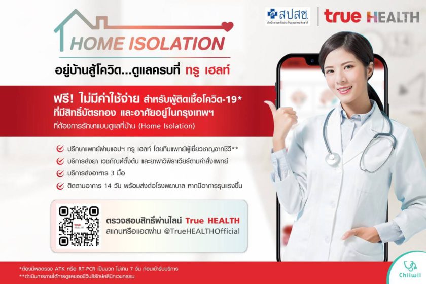 บริการ True HEALTH Home Isolation ดูแลผู้ติดเชื้อโควิด-19 ที่บ้าน ตามเงื่อนไขของสปสช. แบบครบวงจร ครอบคลุมตั้งแต่การแนะนำผู้ป่วยเข้าสู่ระบบการรักษาแบบ Home Isolation การประเมินอาการ การปรึกษาแพทย์ผ่านแอปพลิเคชัน True HEALTH เลือกได้ทั้งแชต โทร และวิดีโอ คอลล์ พร้อมจัดชุดยาและเวชภัณฑ์ตั้งต้น อาทิ ยาแก้ปวดลดไข้ ยาละลายเสมหะ ปรอทวัดไข้ และเครื่องวัดออกซิเจนปลายนิ้ว ตลอดจนอาหารวันละ 3 มื้อ ส่งตรงถึงบ้าน นอกจากนี้ ยังมีทีมแพทย์และพยาบาลคอยติดตามสอบถามอาการเป็นประจำทุกวันตลอดระยะเวลาการรักษา 14 วัน รวมถึงการประสานขอรับยาฟาวิพิราเวียร์ตามคำสั่งของแพทย์ และบริการประสานหาเตียง ในกรณีที่ผู้ป่วยมีอาการรุนแรงขึ้น