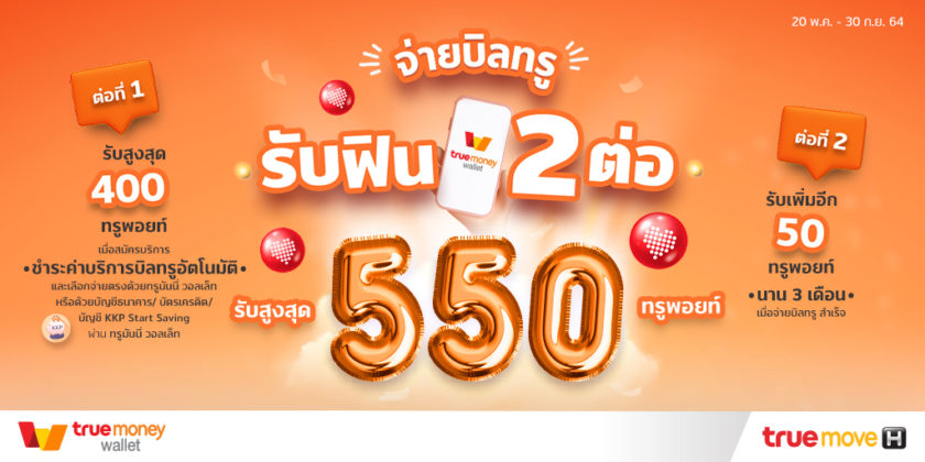 -รับ 200 ทรูพอยท์ เมื่อเลือกชำระผ่านบัตรเครดิต/เดบิต/บัญชีธนาคาร ซึ่งผูกกับบัญชีทรูมันนี่ วอลเล็ท