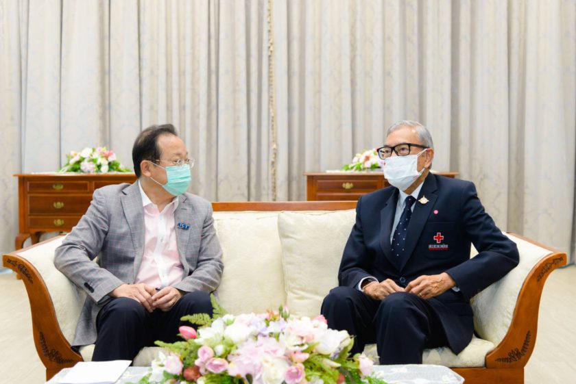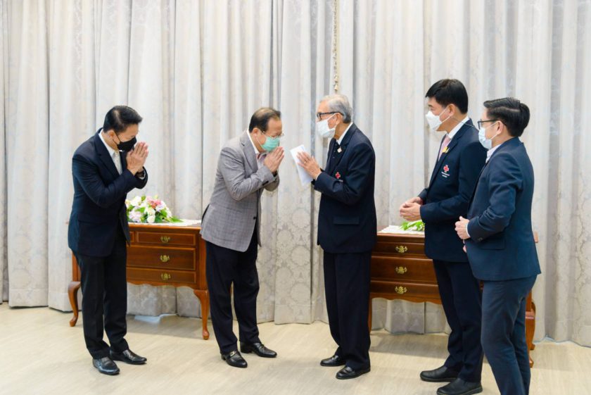 สภากาชาดไทย โดย นายเตช บุนนาค เลขาธิการ (ที่ 3 จากขวา) รับมอบเงินจำนวนเงิน 678,999 บาท จาก สมาคมโทรคมนาคมแห่งประเทศไทย ในพระบรมราชูปถัมภ์ โดย นายวิเชาวน์ รักพงษ์ไพโรจน์ นายกสมาคม (ที่ 3 จากซ้าย) พร้อมด้วยผู้แทนคณะกรรมการบริหาร และผู้แทนหน่วยงานสมาชิกนิติบุคคล เพื่อสมทบทุนสร้างหอผู้ป่วยสนามเร่งด่วน และจัดซื้อเครื่องมืออุปกรณ์ทางการแพทย์ ขยายพื้นที่รองรับผู้ติดเชื้อโควิด-19 ในโครงการพลังใจอาสาช่วยหมอ ให้แก่โรงพยาบาลจุฬาลงกรณ์ สภากาชาดไทย ซึ่งการสนับสนุนครั้งนี้ เป็นอีกหนึ่งกิจกรรมเพื่อสาธารณกุศล เนื่องในโอกาสครบรอบ 31 ปีของการก่อตั้งสมาคมฯ วันที่ 14 กันยายน 2564 ณ อาคารเทิดพระเกียรติสมเด็จพระญาณสังวร สภากาชาดไทย ถนนอังรีดูนังต์ กรุงเทพฯ