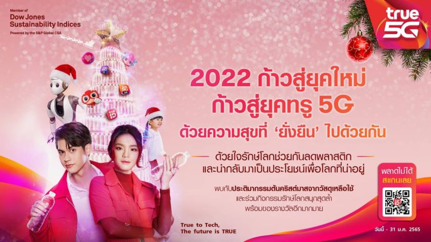 กรุงเทพฯ 13 ธันวาคม 2564 – 2022 ก้าวสู่ยุคใหม่ ก้าวสู่ยุคทรู 5G ฉลองคริสต์มาสและปีใหม่แบบยั่งยืนเพื่อโลกที่ดีกว่าไปด้วยกัน… ทรู 5G พาฮีโร่ ‘ไบร์ท – เฌอปราง’ ส่งต่อความสุข ชวนคนไทยทุกคนสนุกสุดล้ำผ่านแอป True 5G AR เปิดประสบการณ์อัจฉริยะเสมือนจริงไปกับต้นคริสต์มาสรักษ์โลก 3D ครั้งแรก ได้ทุกที่ ทุกเวลา พร้อมลุ้นเป็นเจ้าของรางวัลสุดพิเศษ Limited Edition รวมถึงสัมผัสความประทับใจกับ “True 5G Eco-X’Mas Tree 2022” ที่รังสรรค์สวยงาม สะดุดตาจากวัสดุรีไซเคิล 100% ณ ทรู แบรนดิ้ง ช็อป และทรูช็อป ใจกลางกรุง และเชิญชวนดื่มด่ำงานศิลป์ “นิทรรศการ True Presents ‘Eco Designs by Design Icons’ Curated by MOTIF” จัดแสดงเฟอร์นิเจอร์นำเข้าระดับลักซูรีที่เน้นการออกแบบโดยคำนึงถึงผลกระทบทางสิ่งแวดล้อม ณ ร้าน Motif เซ็นทรัล เอ็มบาสซี