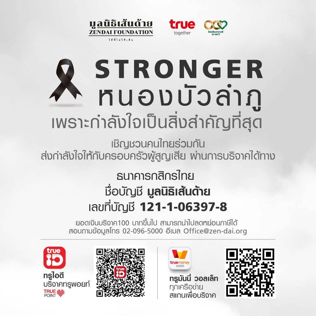 ♥️STRONGER หนองบัวลำภู….กลุ่มทรู จับมือมูลนิธิเส้นด้าย เชิญชวนคนไทยช่วยเหลือครอบครัวผู้สูญเสียจากเหตุการณ์ จ.หนองบัวลำภู ผ่านการบริจาคทรูพอยท์ที่แอปทรูไอดี ทรูมันนี่ วอลเล็ท หรือบัญชีธนาคาร ร่วมส่งกำลังใจไปด้วยกัน
