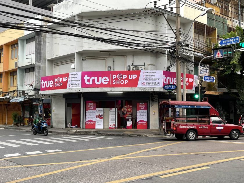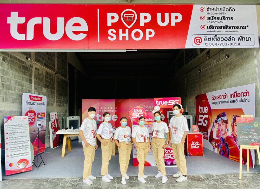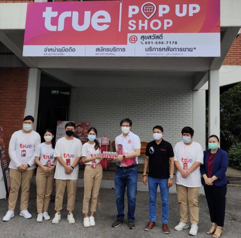 เพื่อเพิ่มช่องทางให้ลูกค้าคนสำคัญเข้าถึงทุกสินค้าและบริการของกลุ่มทรู ได้อย่างต่อเนื่อง ไม่สะดุด…กลุ่มทรู โดยนายมนัสส์ มานะวุฒิเวช (ที่ 4 จากขวา) กรรมการผู้จัดการใหญ่ (ร่วม) บมจ. ทรู คอร์ปอเรชั่น เปิด True POP-UP Shop สาขาสำนักงานสุขสวัสดิ์ ซึ่งเป็น 1 ใน 18 สาขานำร่อง จากที่ตั้งเป้าไว้ทั้งหมด 60 สาขาทั่วประเทศ เพื่อให้ลูกค้าสามารถสมัครแพ็กเกจเสริม เลือกซื้อสินค้าต่างๆ อาทิ สมาร์ทโฟน สมาร์ทดีไวซ์ แกดเจ็ต ตลอดจนสอบถามข้อมูลและบริการหลังการขาย ทั้งเปลี่ยนแปลงข้อมูลบริการ ย้ายค่าย และเปลี่ยนซิมใหม่เบอร์เดิม ทั้งนี้ True POP-UP Shop เป็นช็อปที่กลุ่มทรู เปิดให้บริการทดแทนการปิดสาขาชั่วคราวในห้างสรรพสินค้า ตามข้อกำหนดในราชกิจจานุเบกษา เพื่อลดการแพร่ระบาดของเชื้อโควิด-19 ในพื้นที่ควบคุมสูงสุด 29 จังหวัด โดยเลือกสรรพื้นที่ตั้งของแต่ละจุดใกล้แหล่งชุมชน เพิ่มความสะดวกให้ลูกค้าทรูมากยิ่งขึ้น ทั้งเขตพื้นที่กรุงเทพฯ ปริมณฑล และต่างจังหวัด ซึ่งจะเปิดให้บริการทุกวันตั้งแต่เวลา 10.00 – 18.00 น. ได้แก่