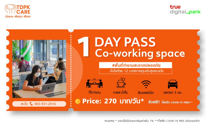โปรแรงสุดคุ้มกับแพ็กเกจสมาชิก Hot Desk ทรู ดิจิทัล พาร์ค ชวนเปลี่ยนบรรยากาศมานั่งทำงานที่ TDPK Co-Working Space เลือกแพ็กเกจสมาชิกได้ทั้งแบบรายวัน รายเดือน และ รายปี สะอาด ปลอดภัย ห่างไกลโควิด-19 พร้อมสิ่งอำนวยความสะดวกครบครัน พิเศษ! สมัครแพ็กเกจรายวัน “1 Day Pass Co-working Space” รับฟรี กิฟต์เซต COVID-19