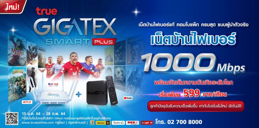 ด้วยความมุ่งมั่นคงความเป็นผู้นำบรอดแบนด์อินเทอร์เน็ตอันดับ 1 ของไทยตัวจริง ที่พัฒนาเทคโนโลยีโครงข่ายให้พร้อมรองรับการใช้งานทุกสถานการณ์ โดยเฉพาะยามวิกฤตโควิด-19 ระลอกใหม่นี้ที่การสื่อสารมีบทบาทสำคัญอย่างยิ่งต่อการดำเนินชีวิตประจำวัน ทรูออนไลน์ เข้าใจทุกความต้องการ จึงคัดสรรคอมโบแพ็กใหม่ล่าสุด ‘True Gigatex Smart Plus’ เน็ตบ้านไฟเบอร์แท้ ความเร็วสูงถึง 1,000 Mbps ครบสุด ให้ทำงาน และเรียนที่บ้าน สะดวก ไม่สะดุด