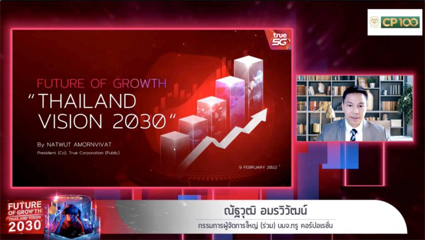 นายณัฐวุฒิ อมรวิวัฒน์ กรรมการผู้จัดการใหญ่ (ร่วม) บริษัททรู คอร์ปอเรชั่น จำกัด (มหาชน) กล่าวในงาน POST TODAY FORUM 2022 FUTURE OF GROWTH: “Thailand Vision 2030” ในโอกาสฉลองก้าวสู่ปีที่ 20 โพสต์ทูเดย์ พร้อมร่วมเสวนาในหัวข้อ Vision for the Next Ten Years for Nation’s Growth Description: การเปลี่ยนแปลงทางเทคโนโลยีแบบก้าวกระโดด คือ จุดเปลี่ยนสู่การตั้งรับที่สำคัญต่อทุกคน ทุกอาชีพ ทุกเพศและวัย เราจะพบอะไรในสิบปีข้างหน้า? เราจะต้องเตรียมตัวอย่างไร? และเราต้องเริ่มจากวันนี้อย่างไร เพื่อไม่ให้เราล้าสมัยและทันสถานการณ์