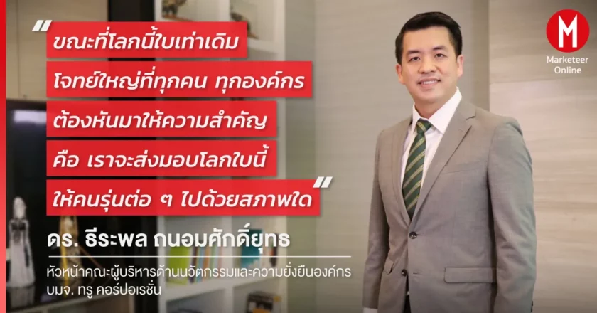 “ในการทำธุรกิจสิ่งที่หลายคนมองคือการสร้างผลกำไรและการเติบโต แต่ทุก ๆ Economy footprint ส่งผลกระทบอื่น ๆ ตามมาด้วยเช่นกัน ทุกธุรกิจต้องการพลังงาน ใช้ทรัพยากร ทุกคนอยากผลิตมากขึ้น บริโภคมากขึ้น ขณะที่โลกนี้ใบเท่าเดิม โจทย์ใหญ่ที่ทุกคน ทุกองค์กรต้องหันมาให้ความสำคัญ คือ เราจะส่งมอบโลกใบนี้ให้คนรุ่นต่อ ๆ ไปด้วยสภาพใด” ดร. ธีระพล ถนอมศักดิ์ยุทธ หัวหน้าคณะผู้บริหารด้านนวัตกรรมและความยั่งยืนองค์กร บมจ. ทรู คอร์ปอเรชั่น