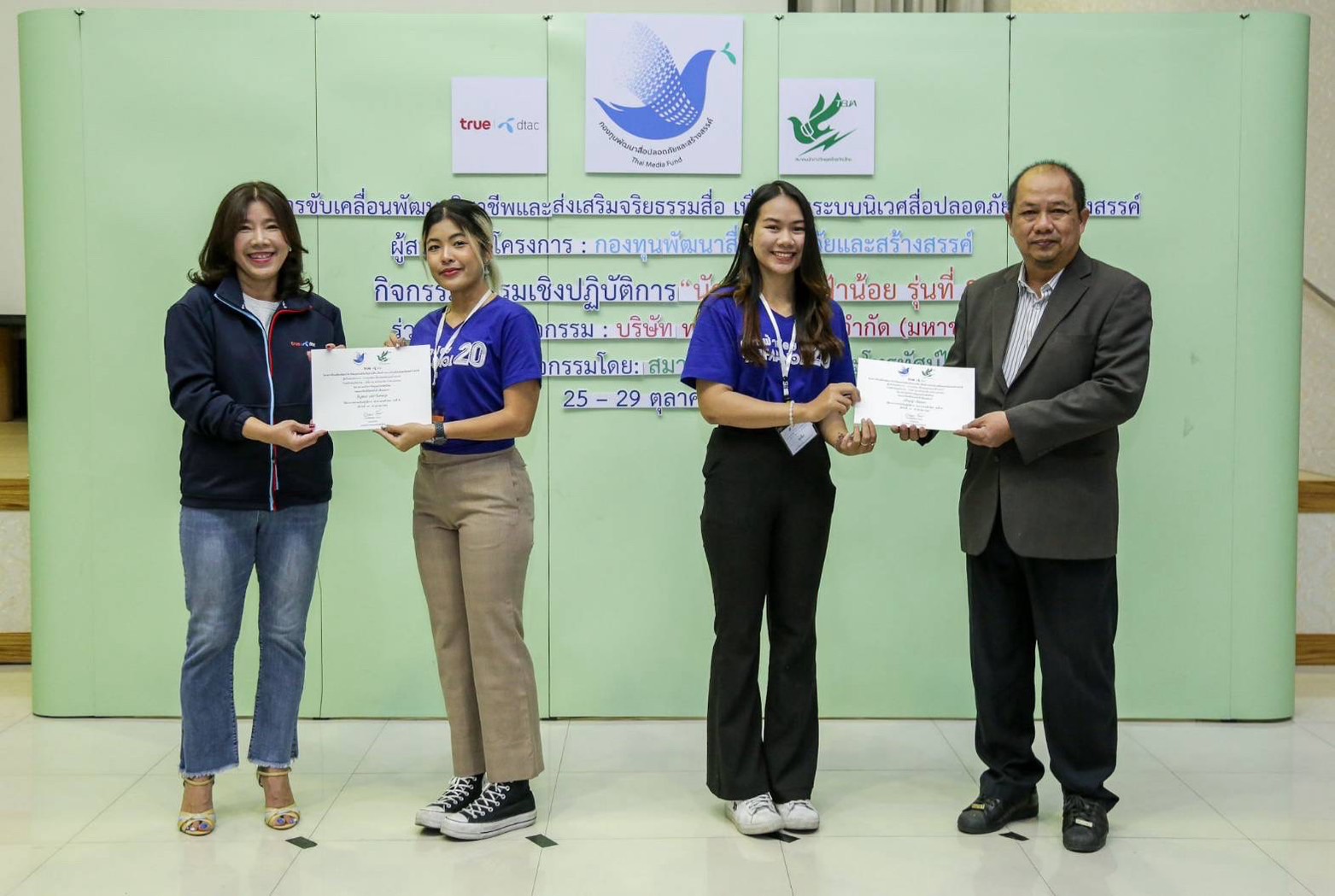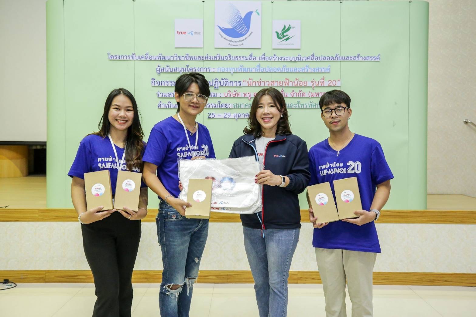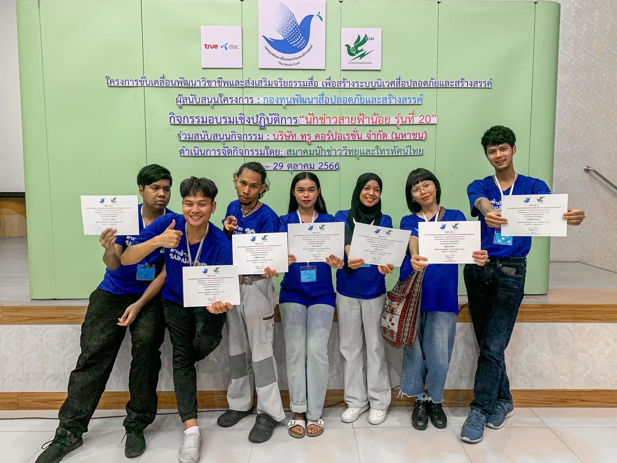 กรุงเทพฯ 30 ตุลาคม 2566 – สมาคมนักข่าววิทยุและโทรทัศน์ไทย โดย นายอิทธิพันธ์ บัวทอง นายกสมาคมฯ ร่วมกับ กองทุนพัฒนาสื่อปลอดภัยและสร้างสรรค์ และ กลุ่มทรู โดย นางพิมลพรรณ ศิริวงศ์วานงาม หัวหน้าฝ่ายสื่อสารประชาสัมพันธ์ภายนอก บมจ. ทรู คอร์ปอเรชั่น ร่วมมอบเกียรติบัตร ในพิธีปิดการอบรมเชิงปฏิบัติการ “นักข่าวสายฟ้าน้อย” รุ่นที่ 20 ประจำปี 2566 ให้กับนิสิต นักศึกษา 50 คนจากมหาวิทยาลัยทั่วประเทศ ที่เข้าร่วมโครงการในระหว่างวันที่ 25-29 ตุลาคม 2566 ณ สันนิบาตสหกรณ์แห่งประเทศไทย กรุงเทพฯ โดยนิสิต นักศึกษาที่เข้าร่วมโครงการได้นำความรู้ที่ได้เรียนรู้ตลอด 5 วัน จากทุกกระบวนการของงานข่าว มานำเสนอเป็นผลงานสกู๊ปข่าวโทรทัศน์เสมือนจริงให้กับคณะกรรมการผู้ทรงคุณวุฒิในสายงานสื่อสารมวลชน ก่อนก้าวเข้าสู่วิชาชีพสื่อสารมวลชนอย่างมีคุณภาพ ซึ่งกลุ่มทรูได้ให้การสนับสนุนโครงการดังกล่าวมาอย่างต่อเนื่องมากกว่า 20 ปี