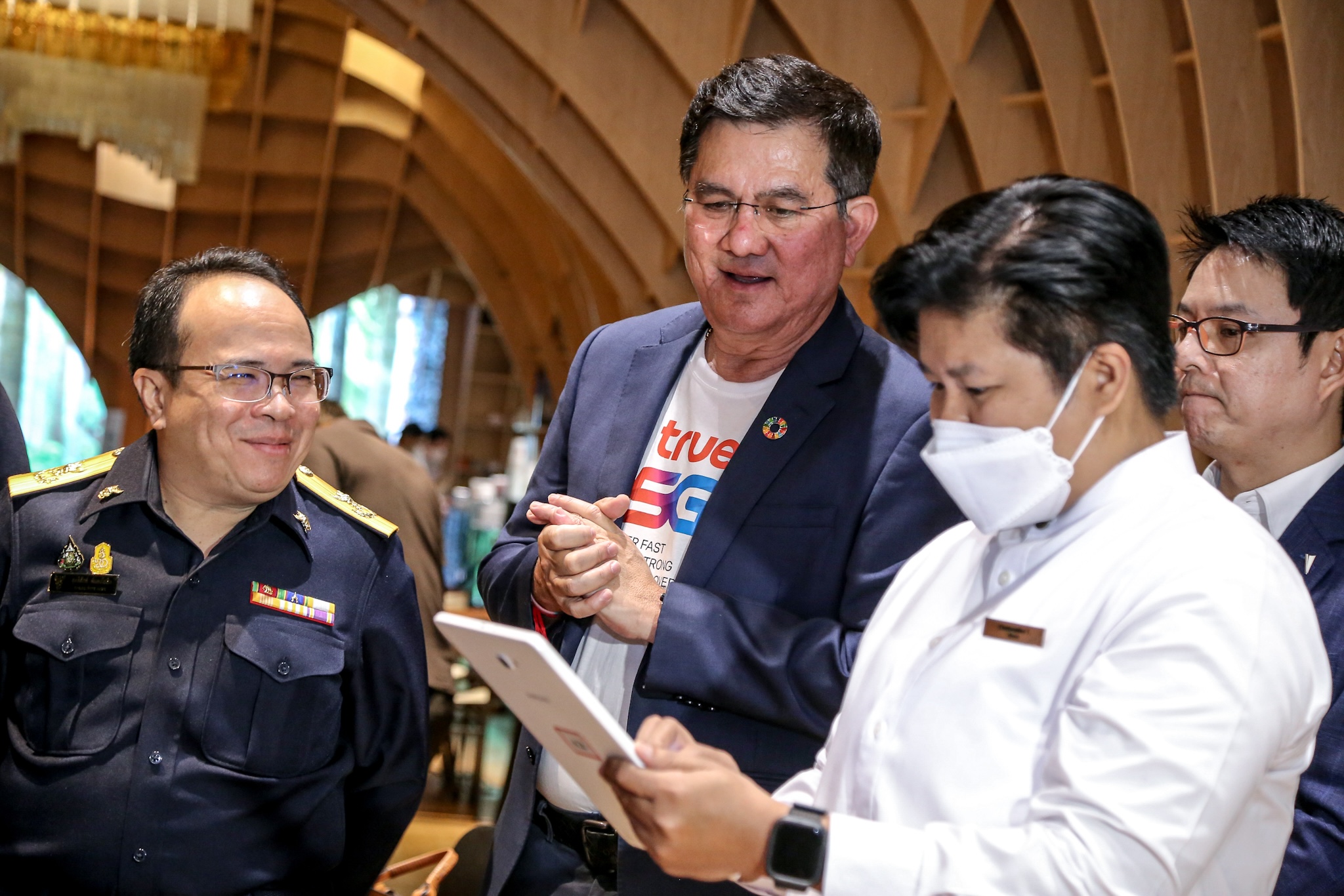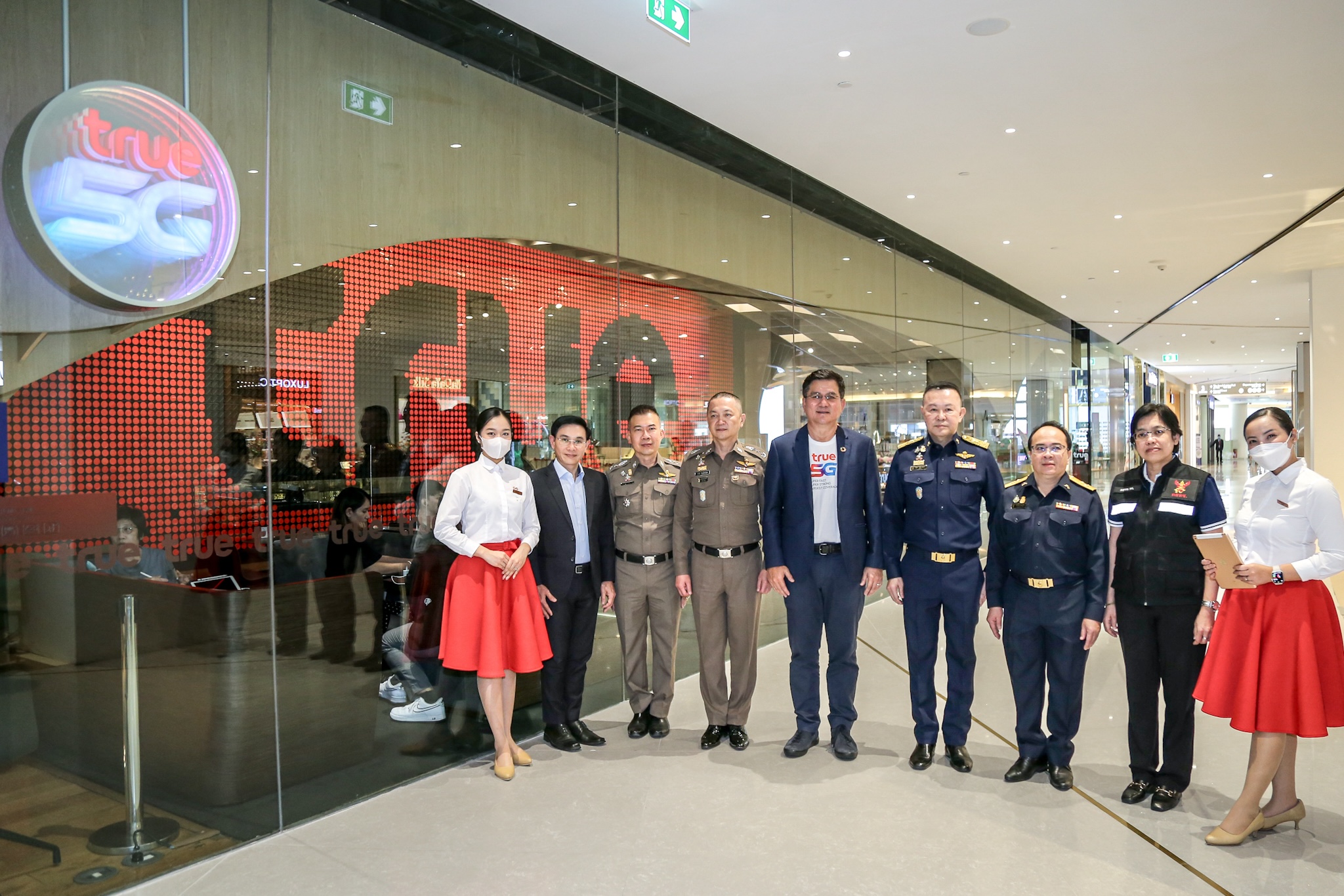 กรุงเทพฯ 3 เมษายน 2567 – สำนักงานคณะกรรมการกิจการกระจายเสียง กิจการโทรทัศน์ และกิจการโทรคมนาคมแห่งชาติ โดย พล.ต.อ ณัฐธร เพราะสุนทร (ที่ 4 จากขวา) กรรมการด้านกฎหมาย และประธานอนุกรรมการบูรณาการบังคับใช้กฎหมายความผิดทางเทคโนโลยี กสทช. และ นายสุทธิศักดิ์ ตันตะโยธิน (ที่ 3 จากขวา) รองเลขาธิการ กสทช. พร้อมด้วย พลตำรวจโท ธัชชัย ปิตะนีละบุตร ผู้ช่วยผู้บัญชาการตำรวจแห่งชาติ ดูแลงานด้านอาชญากรรมเทคโนโลยี / อนุกรรมการบูรณาการฯ สำนักงานตำรวจแห่งชาติ (ที่ 4 จากซ้าย) เดินทางมาตรวจเยี่ยมทรูช็อป เพื่อติดตามความคืบหน้าการลงทะเบียนเลขหมายโทรศัพท์เคลื่อนที่และการยืนยันตัวตนของผู้ใช้บริการที่ถือครองเลขหมายเกินกว่า 6 เลขหมายขึ้นไป เพื่อป้องกันมิจฉาชีพนำไปใช้ในการก่ออาชญากรรมออนไลน์ โดยมี นายจักรกฤษณ์ อุไรรัตน์ (ที่ 5 จากซ้าย) หัวหน้าคณะผู้บริหารด้านกิจการองค์กร บมจ. ทรู คอร์ปอเรชั่น ให้การต้อนรับพร้อมสาธิตวิธีการยืนยันตัวตน และนำชมเทคโนโลยีที่ได้พัฒนาและวางระบบยืนยันตัวตนที่มีความปลอดภัยขั้นสูง เพื่ออำนวยความสะดวกจากนโยบายดังกล่าวให้กับลูกค้าทรูมูฟ เอช และดีแทค ทั้งแบบรายเดือนและแบบเติมเงินอย่างเต็มที่ ณ ทรู แบรนดิ้ง ช็อป ศูนย์การค้าสยามพารากอน