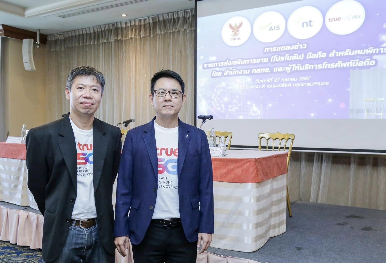 กรุงเทพฯ 27 เม.ย. 2567 – สำนักงานคณะกรรมการกิจการกระจายเสียง กิจการโทรทัศน์ และกิจการโทรคมนาคมแห่งชาติ (กสทช.) โดย นายต่อพงศ์ เสลานนท์ กสทช. ด้านการส่งเสริมสิทธิเสรีภาพของประชาชน และนายสุทธิศักดิ์ ตันตะโยธิน รองเลขาธิการ กสทช. (สายงานกิจการโทรคมนาคม) พร้อมผู้ให้บริการโทรศัพท์เคลื่อนที่ ร่วมแถลงข่าวแพ็กเกจโทรศัพท์เคลื่อนที่และส่วนลดราคาสำหรับคนพิการ ในโอกาสนี้ บมจ. ทรู คอร์ปอเรชั่น โดยนายกนกศักดิ์ นิ่มนวลรัตน์ หัวหน้าฝ่าย Government & Public Utilities เป็นตัวแทน ร่วมให้ข้อมูลรายการส่งเสริมการขาย (โปรโมชั่น) ที่ทรู ตั้งใจจัดขึ้นเพื่อสนับสนุนให้กลุ่มคนเปราะบาง เข้าถึงเทคโนโลยีดิจิทัลและการสื่อสารได้อย่างเท่าเทียม นอกจากนี้ นายวันชัย ฉัตรฐิติ จากหน่วยงาน Regulatory Strategy ยังได้ร่วมบรรยายให้ความรู้การดำเนินงานของทรูเพื่อผู้พิการ ในหัวข้อ “บริการโทรคมนาคมกับคนหูหนวก” ซึ่งเป็นส่วนหนึ่งของการอบรมการอบรมเชิงปฏิบัติการเพื่อสร้างกลุ่มเครือข่ายผู้บริโภคในกิจการโทรคมนาคมในกลุ่มคนพิการ ครั้งที่ 1 (คนพิการทางการได้ยิน) ณ โรงแรม ดิ เอมเมอรัลด์ ถ.รัชดาภิเษก