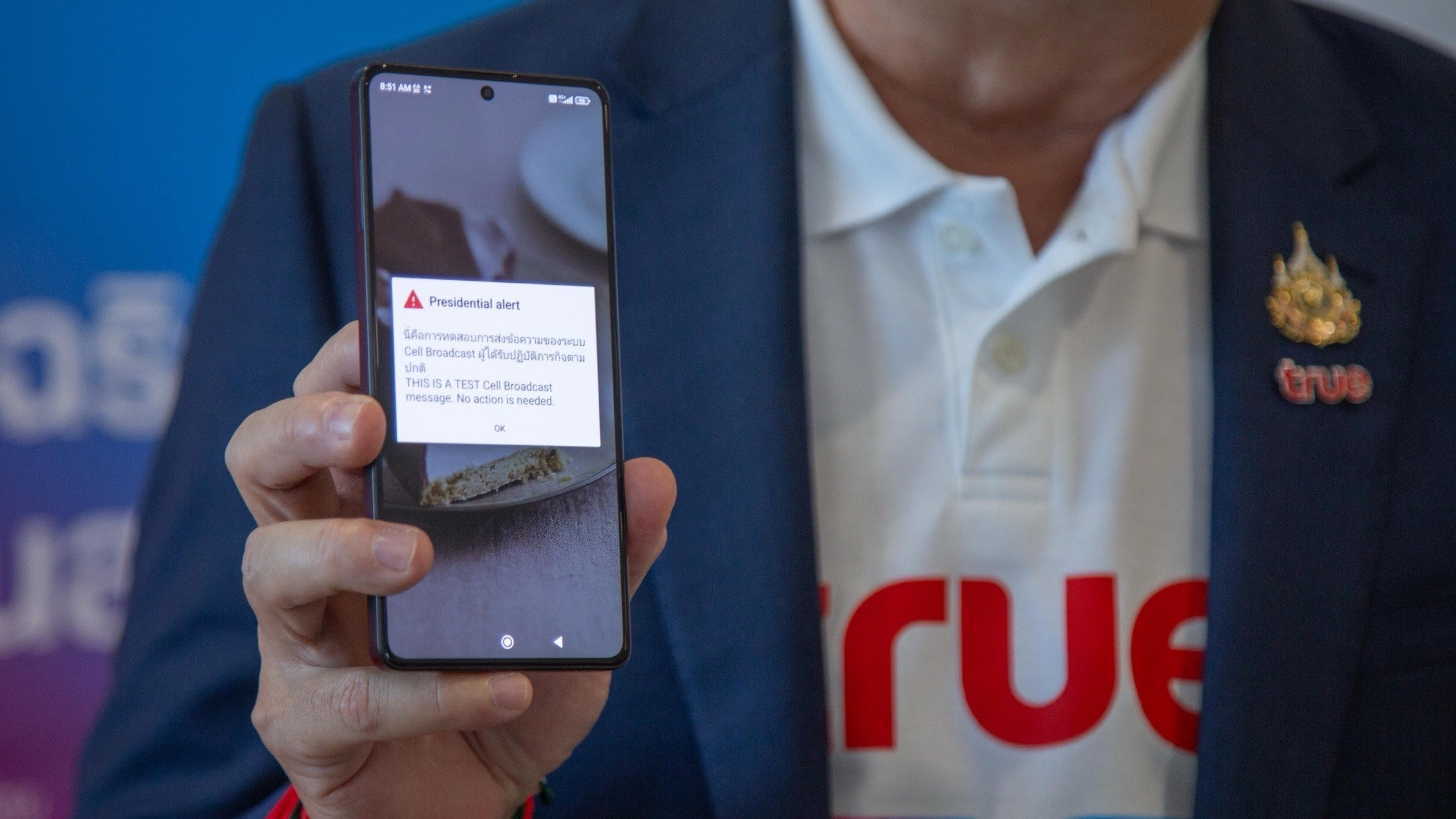 สำหรับการทดสอบระบบแจ้งเตือนภัยฉุกเฉินผ่านมือถือกับผู้ใช้งานจริง หรือ “LIVE – Cell Broadcast Service” ที่ภูเก็ต นับเป็นก้าวสำคัญของประเทศไทยในการยกระดับมาตรการรักษาความปลอดภัยให้ทัดเทียมนานาประเทศ โดยเป็นความร่วมมืออย่างใกล้ชิดระหว่างทรู คอร์ปอเรชั่น กสทช. ดีอี และ ปภ. ในการพัฒนาโครงสร้างพื้นฐานด้านความปลอดภัย ซึ่งจะส่งผลดีต่อคุณภาพชีวิตของประชาชนและความเชื่อมั่นของนักท่องเที่ยว โดยทรูในฐานะ Cell Broadcast Center หรือ CBC จะเตรียมเชื่อมต่อระบบทดสอบร่วมกับกรมป้องกันและบรรเทาสาธารณภัย ซึ่งทำหน้าที่เป็น Cell Broadcast Entity หรือ CBE บนเครือข่ายที่ให้บริการจริง (Live Network) แบบครบวงจร เพื่อความพร้อมก่อนเปิดให้บริการต่อไป