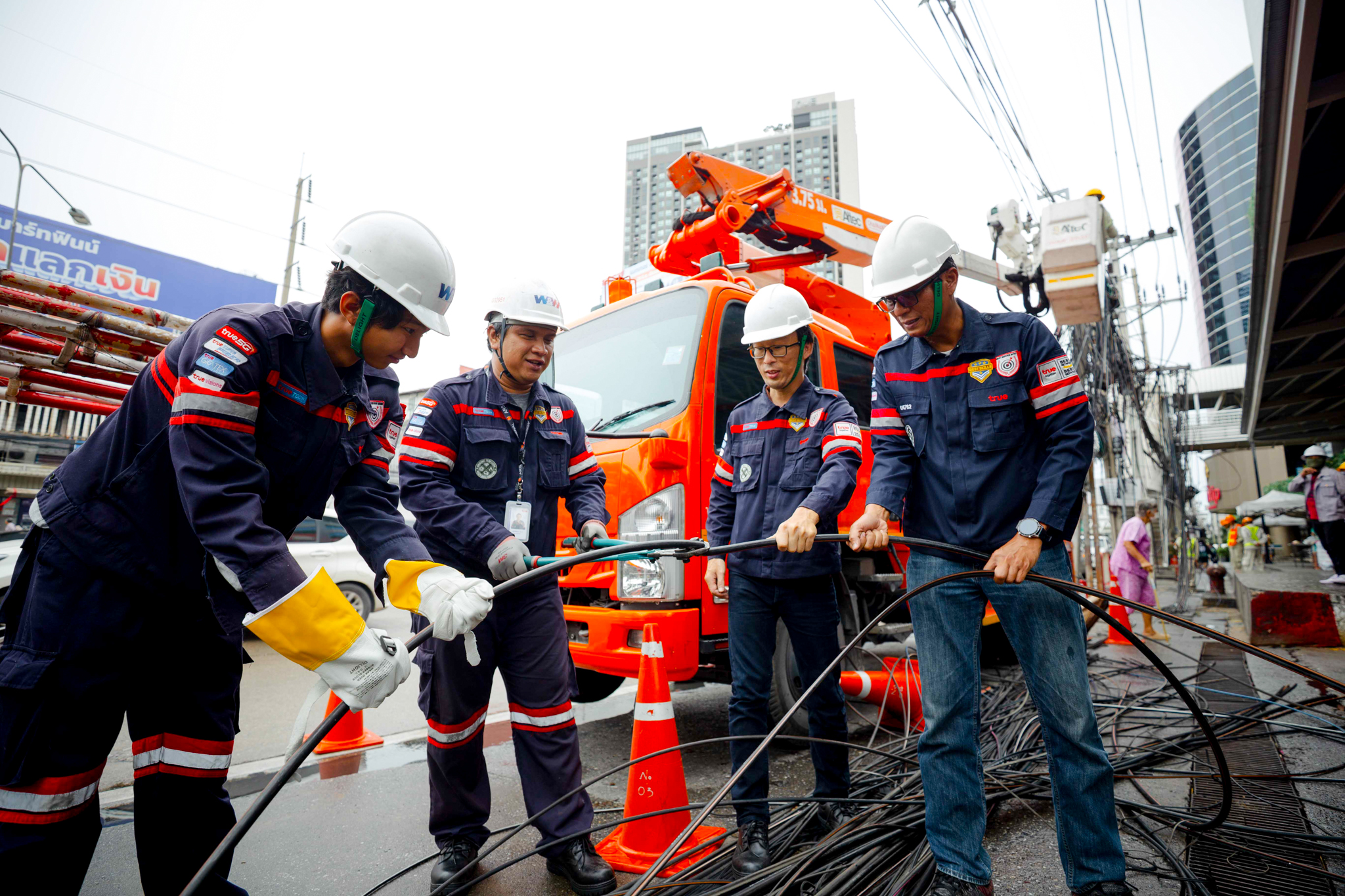 การจัดระเบียบสายสื่อสาร ทั้งในรูปแบบการจัดระเบี ยบสายบนเสาไฟฟ้า และการนำสายลงใต้ดิน ถือเป็นภารกิจสำคัญของทรู ในฐานะผู้ให้บริการโครงข่ายสื่ อสารที่มีบทบาทต่อโครงสร้างพื้ นฐานของประเทศ ทรูยังคงเดินหน้าอย่างต่อเนื่อง โดยร่วมมือกับหน่วยงานรัฐและพั นธมิตรหลากหลายฝ่าย เพื่อให้การจัดระเบียบสายสื่ อสารเป็นไปตามนโยบายของภาครัฐ และรองรับการพัฒนาเมื องในระยะยาว ทั้งด้านความปลอดภัย ทัศนียภาพ และคุณภาพการสื่ อสารของคนไทยในอนาคต