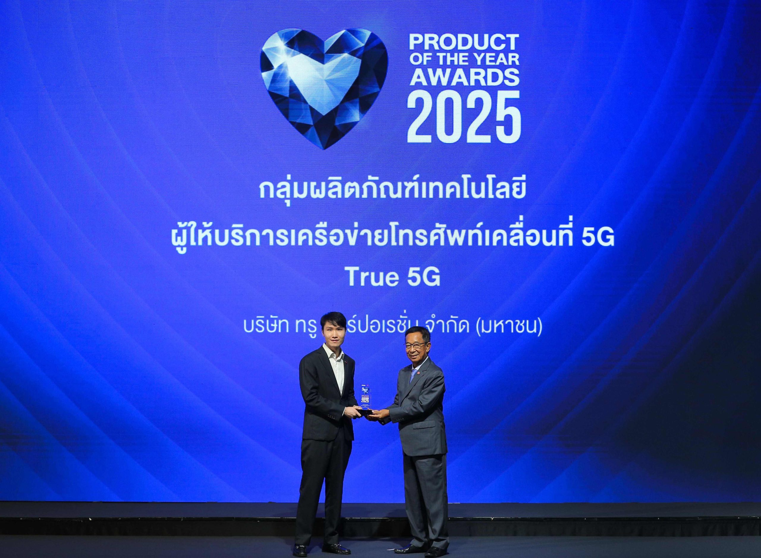 รางวัล “BUSINESS+ PRODUCT OF THE YEAR AWARDS 2025” จัดขึ้นโดย นิตยสาร Business+ ในเครือบริษัท เออาร์ไอพี จำกัด (มหาชน) ร่วมกับ วิทยาลัยการจัดการ มหาวิทยาลัยมหิดล (CMMU) เพื่อคัดเลือกและยกย่องผลิตภัณฑ์และบริการที่มีความโดดเด่นด้านนวัตกรรม คุณภาพ และความสามารถในการตอบสนองความต้องการของผู้บริโภคในยุคดิจิทัลได้อย่างมีประสิทธิภาพ การได้รับรางวัลในครั้งนี้ ถือเป็นการตอกย้ำถึงความเป็นผู้นำของทรู5G ในการสร้างระบบนิเวศ 5G ที่แข็งแกร่งและยั่งยืน สะท้อนถึงความเชื่อมั่นจากผู้บริโภค และการยอมรับจากภาคอุตสาหกรรมในวงกว้าง