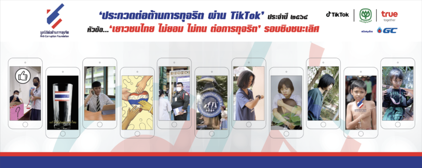 มูลนิธิต่อต้านการทุจริต ร่วมกับ เครือเจริญโภคภัณฑ์ กลุ่มทรู และ TikTok เชิญชมการประกวดรอบชิงชนะเลิศ การประกวด ‘ต่อต้านการทุจริต ผ่าน TikTok’ ประจำปี 2564 หัวข้อ ‘เยาวชนไทย ไม่ยอม ไม่ทน ต่อการทุจริต’