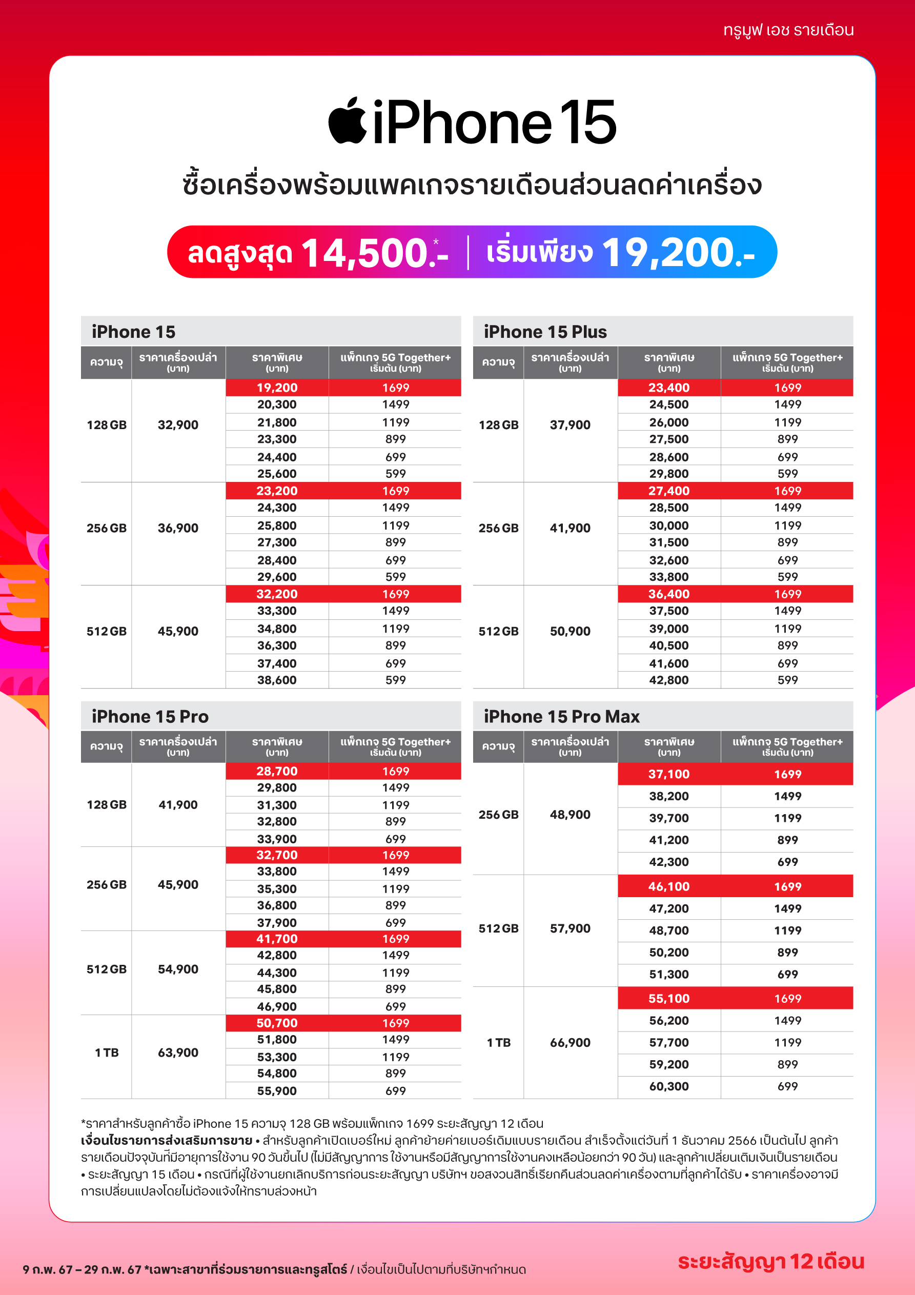📌 ลดสูงสุด 14,500 บาท เริ่มเพียง 19,200 บาท ผ่อนค่าเครื่อง 0% นานสูงสุด 10 เดือน
