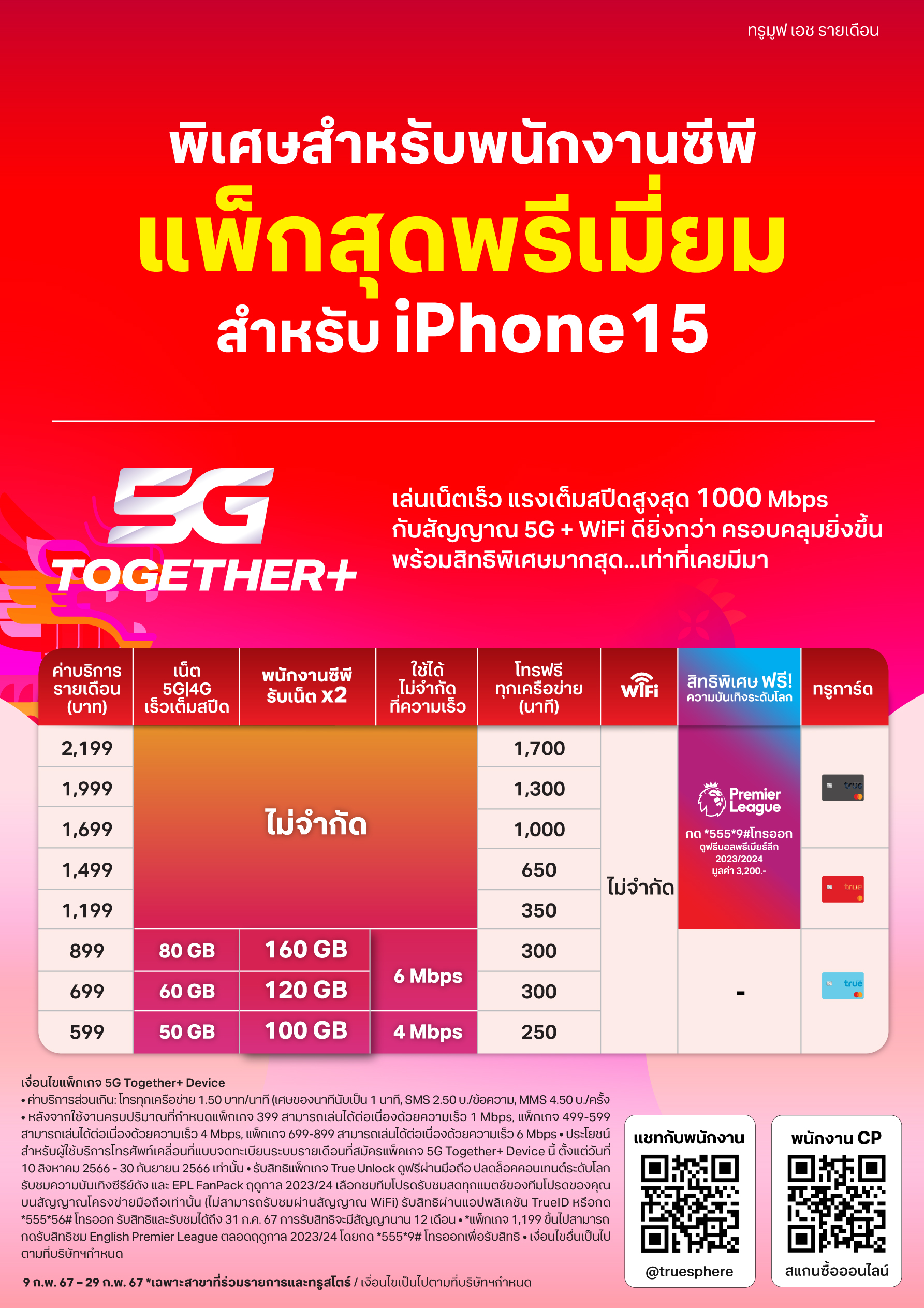 ไม่ต้องชำระค่าบริการล่วงหน้า พร้อมรับเน็ตคูณ 2 เมื่อสมัครแพ็กเกจ 5G Together+ 599-899
