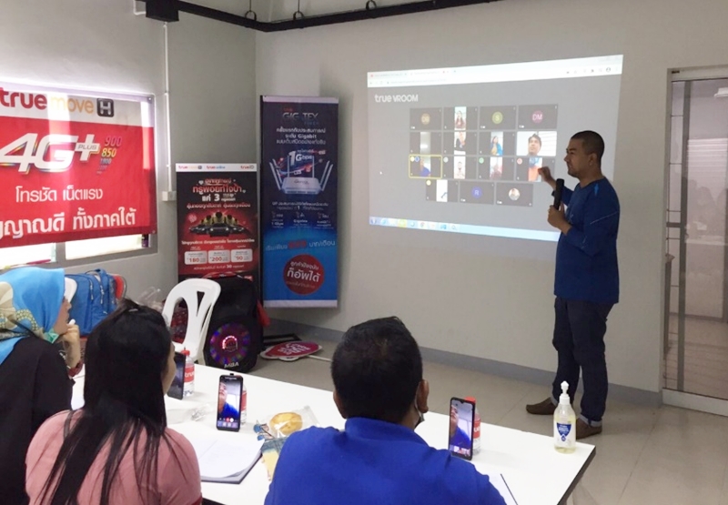 นอกจากนี้ ในสถานการณ์ที่ยังมีการแพร่ระบาดของโควิด-19 ซึ่งยังต้องเว้นระยะห่างทางสังคม ซึ่ง กลุ่มทรู ได้นำเทคโนโลยี TRUE ROOM มาให้บริการ เพื่อตอบโจทย์การติดต่อสื่อสารถึงกันได้แม้ไม่ได้พบเจอกันโดยตรง ซึ่งในวันนั้น คุณศานิต จันทร์แป้น Regional People Officer ได้แนะนำและสาธิตวิธีการใช้งานแอปพลิเคชัน TRUE VROOM เพื่อเป็นทางเลือกให้ชาวชุมชน และเกษตรกรใช้เทคโนโลยีสื่อสารในการติดต่อสื่อสารหรือจัดประชุมกลุ่มชาวบ้านได้สะดวกและรวดเร็ว
