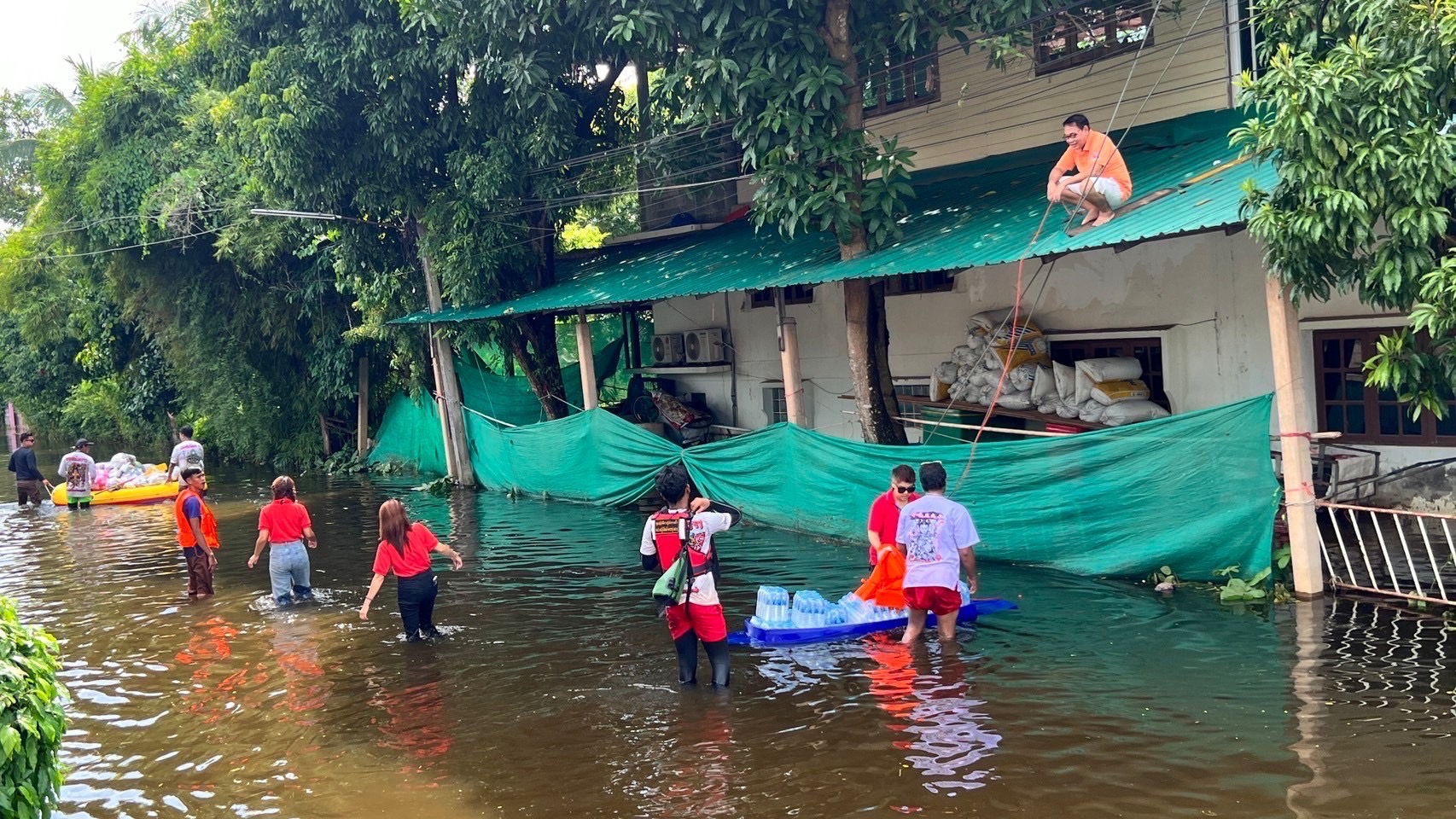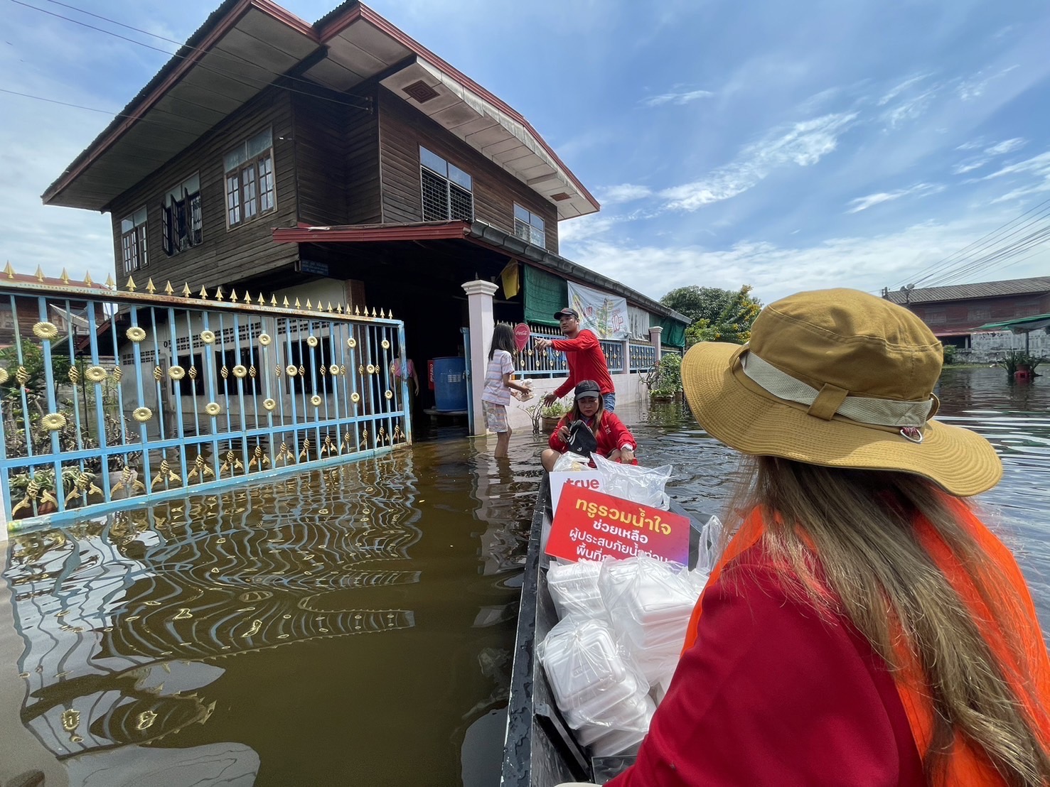 นอกจากนี้ ทรู คอร์ปอเรชั่น ยังเร่งดำเนินการช่วยเหลือผู้ประสบอุทกภัยในจังหวัดต่างๆ ที่ได้รับผลกระทบอย่างต่อเนื่อง อาทิ มอบอาหาร น้ำดื่ม และถุงยังชีพแก่ชุมชนต่างๆ ในตำบลน้ำโมง ตำบลกองนาง ตำบลป่าสัก ตำบลท่าบ่อ ตำบลศรีเชียงใหม่ จังหวัดหนองคาย เป็นต้น พร้อมกับประสานทีมเน็ตเวิร์กปฏิบัติหน้าที่ตามแผนฉุกเฉินดูแลเสาสัญญาณในพื้นที่น้ำท่วม เช่น อบต.แก้งไก่ โดยนำเรือท้องแบนและนำอุปกรณ์เครื่องปั่นไฟและน้ำมันเชื้อเพลิง พร้อมทั้งอุปกรณ์สำรองเข้าซ่อมบำรุง เพื่อให้เสาสัญญาณในจุดที่ถูกตัดกระแสไฟเพื่อความปลอดภัย ให้ทำงานต่อได้ในสถานการณ์ฉุกเฉิน เพื่อให้ประชาชนในพื้นที่ยังสามารถติดต่อสื่อสารได้แม้ในภาวะวิกฤต