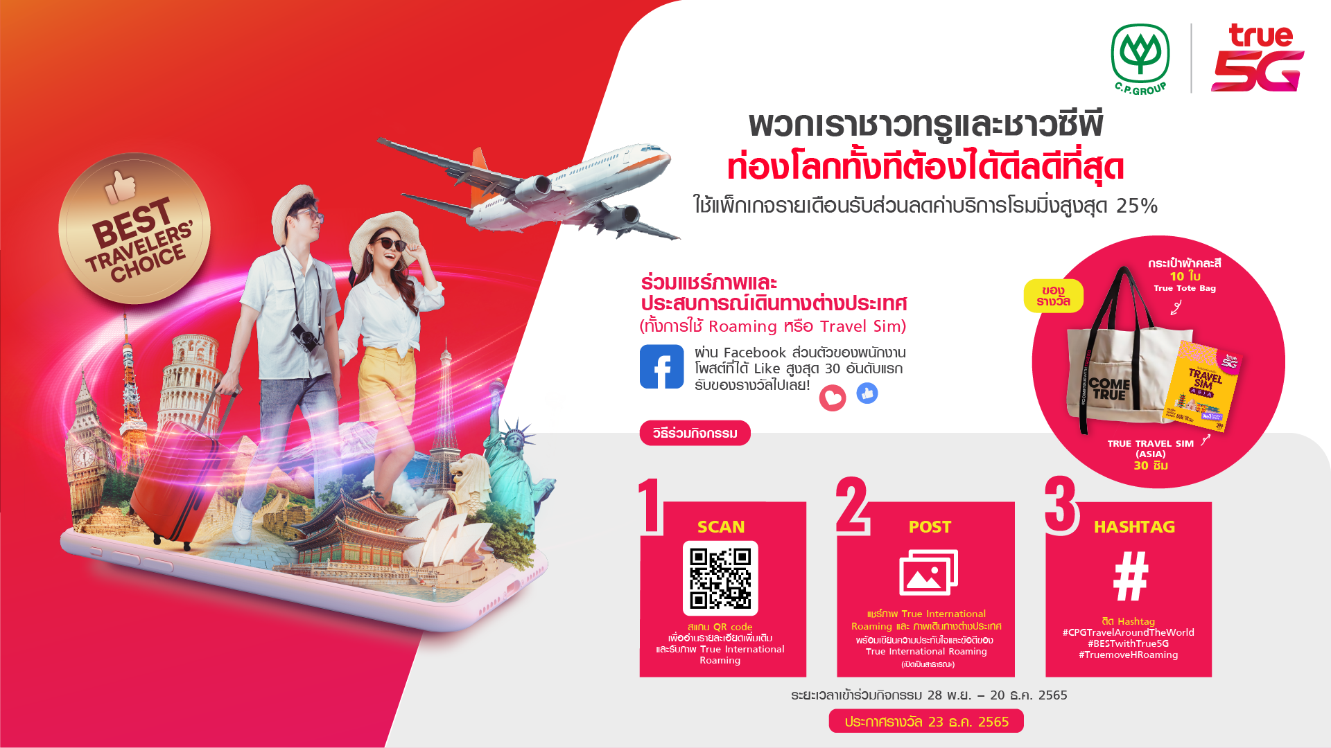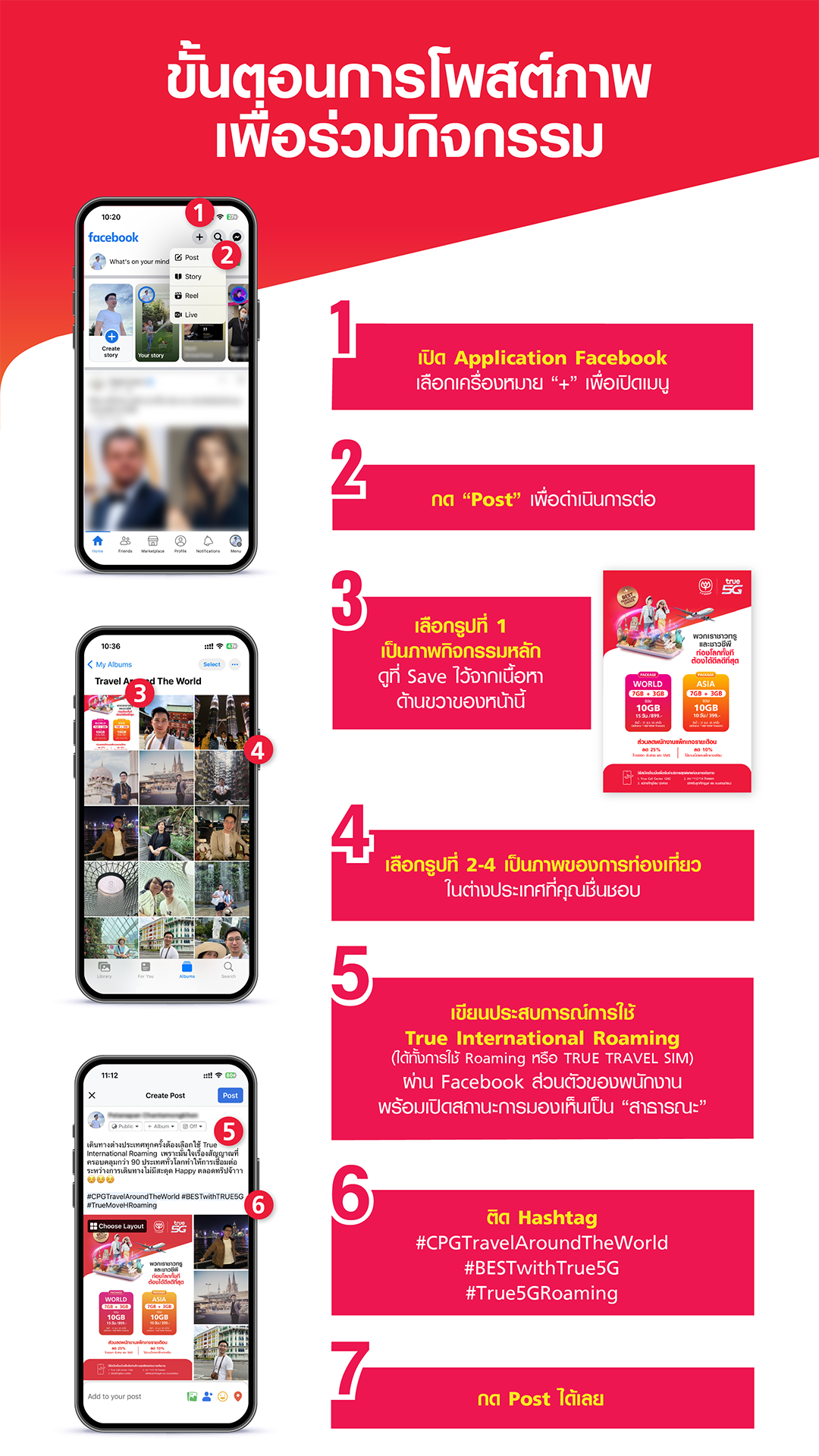 4. ติด Hashtag #CPGTravelAroundTheWorld #BESTwithtrue5G #TruemoveHRoaming