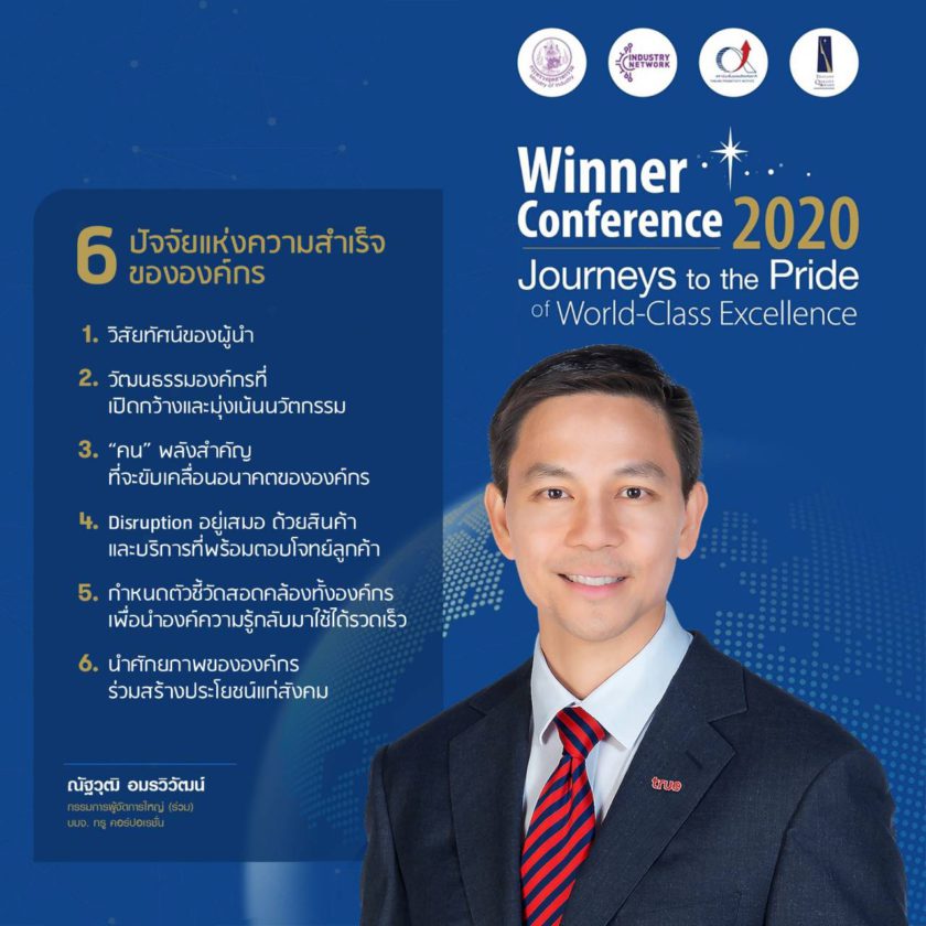 กลุ่มธุรกิจโทรศัพท์เคลื่อนที่ในกลุ่มบริษัททรู ในฐานะองค์กรที่ได้รับรางวัลคุณภาพแห่งชาติ ประจำปี 2562 โดยคุณณัฐวุฒิ อมรวิวัฒน์ กรรมการผู้จัดการใหญ่ (ร่วม) บมจ. ทรู คอร์ปอเรชั่น เข้าร่วมงาน “Thailand Quality Award Winner Conference 2020” พร้อมถ่ายทอดองค์ความรู้จากกลุ่มทรู ในหัวข้อ “Passion for Excellence : องค์กรที่มีความโดดเด่นด้านดิจิทัล”