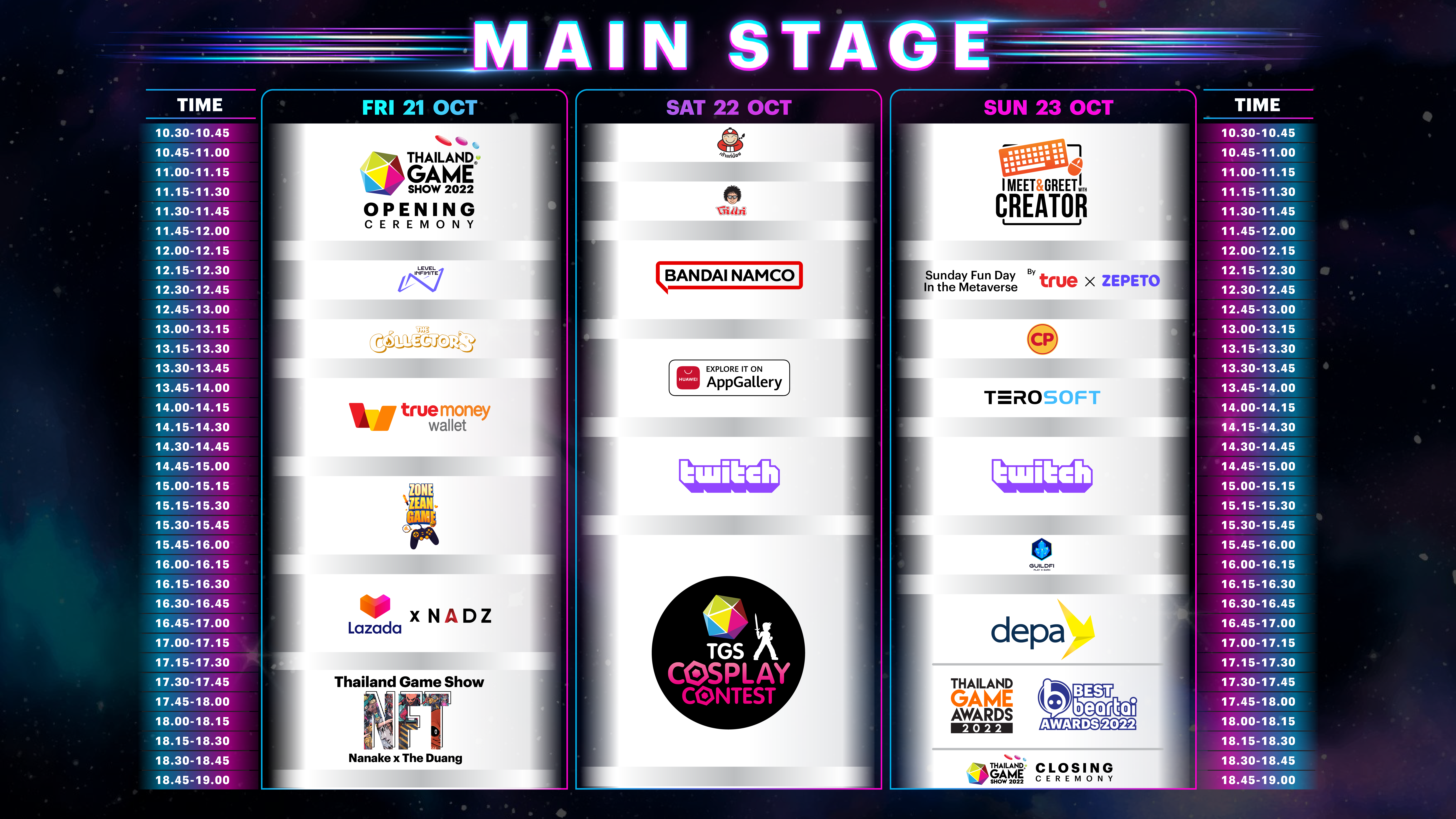 “Thailand Game Show 2022 : Come Back ” พร้อมระเบิดความมันส์ ตลอด 3 วันเต็ม ตั้งแต่วันศุกร์ที่ 21 – วันอาทิตย์ที่ 23 ตุลาคมนี้ ณ ศูนย์การประชุมแห่งชาติสิริกิติ์ Exhibition Hall 3 – 4 ชั้น G ตั้งแต่เวลา 10.00 – 20.00 น. บัตรราคา 150 บาท สามารถเข้างานได้ 1 วัน และราคา 500 บาท รับเพิ่มเสื้อ T- Shirt “Thailand Game Show 2022” พิเศษรับฟรีสเปรย์แอลกอฮอล์สำหรับผู้เข้างานทุกท่าน ติดตามรายละเอียดได้ที่ : https://facebook.com/thailandgameshow