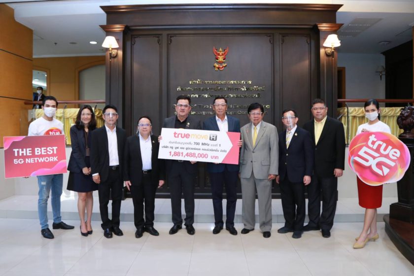 สำนักงานคณะกรรมการกิจการกระจายเสียง กิจการโทรทัศน์ และกิจการโทรคมนาคมแห่งชาติ โดย พล.อ.สุกิจ ขมะสุนทร (ที่5 จากขวา) ประธานคณะกรรมการ พร้อมด้วย คณะผู้บริหาร กสทช. ร่วมรับมอบเงินค่าประมูลคลื่นความถี่สำหรับกิจการโทรคมนาคมย่าน 700 MHz ช่วงความถี่ 703-713 MHz คู่กับ 758-768 MHz ที่ได้รับการจัดสรรเมื่อวันที่ 19 มิ.ย. 2562 จาก บริษัท ทรูมูฟ เอช ยูนิเวอร์แซล คอมมิวนิเคชั่น จำกัด โดย คุณจักรกฤษณ์ อุไรรัตน์ (ที่5 จากซ้าย) ผู้อำนวยการด้านรัฐกิจสัมพันธ์ บมจ. ทรู คอร์ปอเรชั่น จำนวน 1,881.488 ล้านบาท (รวมภาษีมูลค่าเพิ่มแล้ว) พร้อมกับหลักประกันการชำระเงินค่าคลื่นความถี่ในส่วนที่เหลือวงเงินจำนวน 16,933.392 ล้านบาท (รวมภาษีมูลค่าเพิ่มแล้ว) ตามเงื่อนไขการรับใบอนุญาต