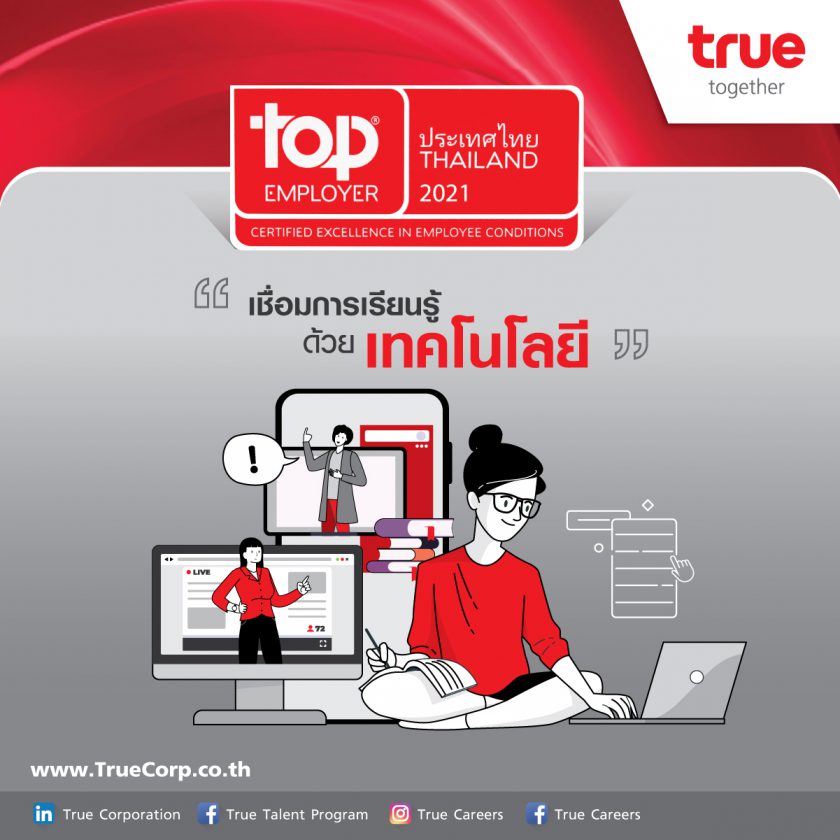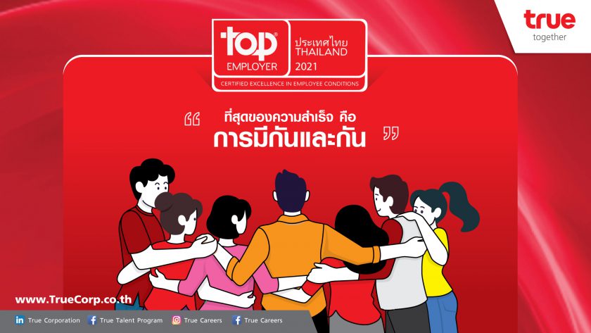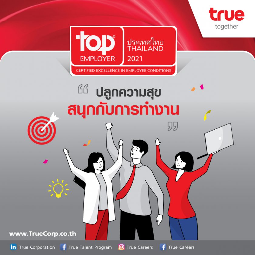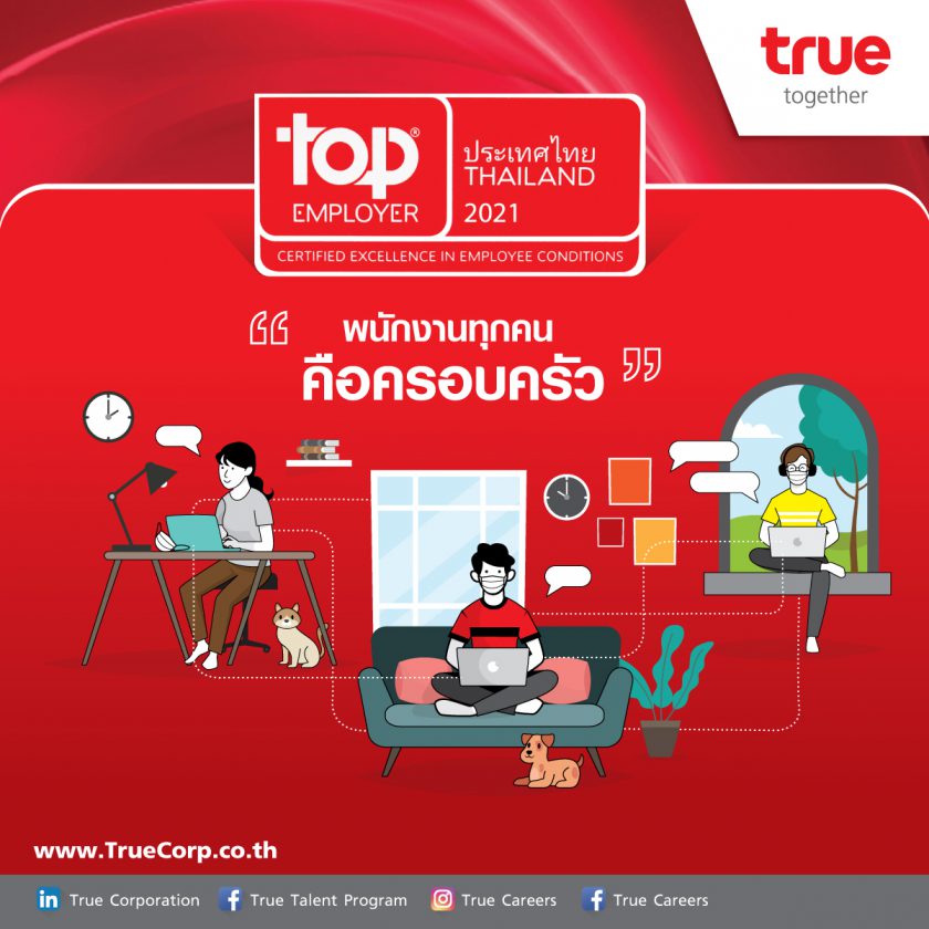 วันนี้กลุ่มทรูคว้ารางวัลแห่งความภูมิใจ Top Employer Thailand 2021 นายจ้างดีเด่นประจำประเทศไทย ต่อเนื่อง 3 ปีซ้อน “เพราะพนักงานทรูทุกคน คือ คนสำคัญของเรา” เราจึงพัฒนาอย่างไม่หยุดยั้ง เพื่อมุ่งสู่การเป็น People Organization