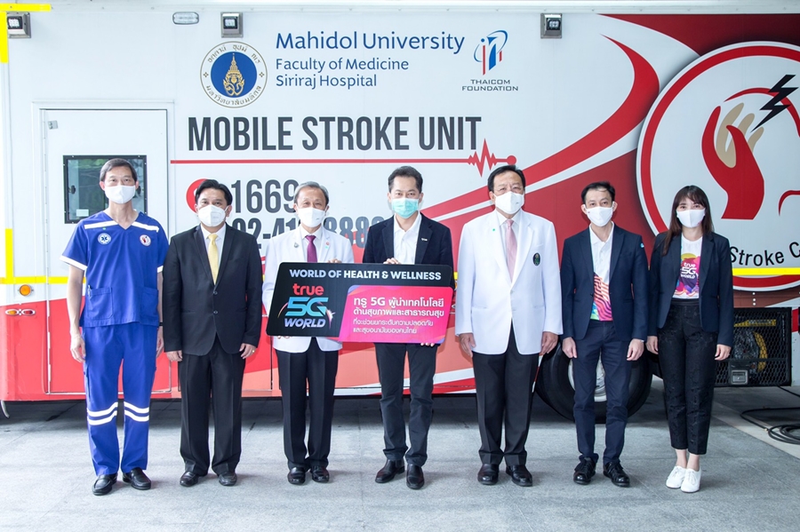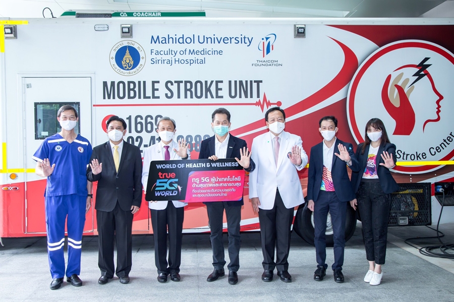 โรงพยาบาลทุกภูมิภาคทั่วประเทศ โดยนำศักยภาพเทคโนโลยี True 5G เครือข่ายอัจฉริยะของกลุ่มทรู ซึ่งมีจุดเด่นทั้งเรื่องของศักยภาพความเร็วสูง ความหน่วงต่ำ และความสามารถในการเชื่อมต่ออุปกรณ์หลากหลาย มาเพิ่มประสิทธิภาพให้กับรถรุ่นใหม่ หน่วยรักษาอัมพาตเคลื่อนที่ศิริราช 2020 (Siriraj Mobile Stroke Unit) ที่สร้างโดยคณะแพทยศาสตร์ศิริราชพยาบาล ร่วมกับคณะวิศวกรรมศาสตร์ มหาวิทยาลัยมหิดล ช่วยให้บุคลากรทางการแพทย์วางแผนการรักษาได้ทันทีและแม่นยำก่อนผู้ป่วยจะเดินทางมาถึงโรงพยาบาล โดยเชื่อมต่อด้วยซิม True 5G-Ready และอุปกรณ์รับสัญญาณ CPE 5G ผ่านเครือข่ายอัจฉริยะ True 5G ที่ได้ติดตั้งภายในโรงพยาบาล และตลอดเส้นทางที่รถพยาบาลวิ่งผ่าน ได้แก่ ถนนกาญจนาภิเษก เขตตลิ่งชัน, ถนนพรานนก-พุทธมณฑล, ถนนบรมราชชนนี และถนนอรุณอมรินทร์ เขตบางกอกน้อย ซึ่งทำให้การเชื่อมต่อเป็นไปอย่างต่อเนื่อง และมีประสิทธิภาพสูงสุด ช่วยเพิ่มโอกาสในการเข้าถึงบริการทางการแพทย์ให้กับผู้ป่วยโรคหลอดเลือดสมองเฉียบพลันได้สะดวกและรวดเร็ว รวมทั้งลดอัตราการตายหรือพิการของผู้ป่วยได้อีกด้วย”