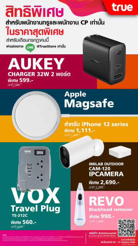 ลดเฉพาะพนักงานเครือซีพีและกลุ่ มทรู สั่งซื้อผ่านช่องทาง Line@ Truestore เริ่ม 26 – 31 ก.ค. 64 เท่านั้น