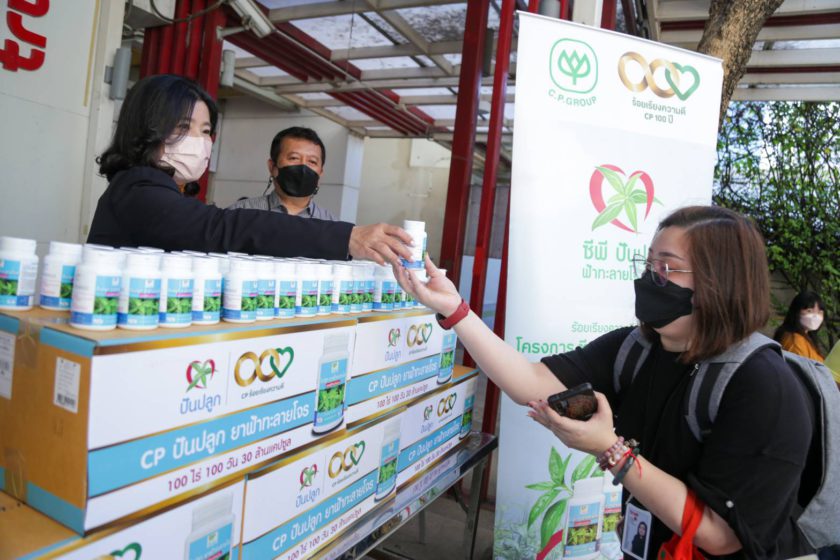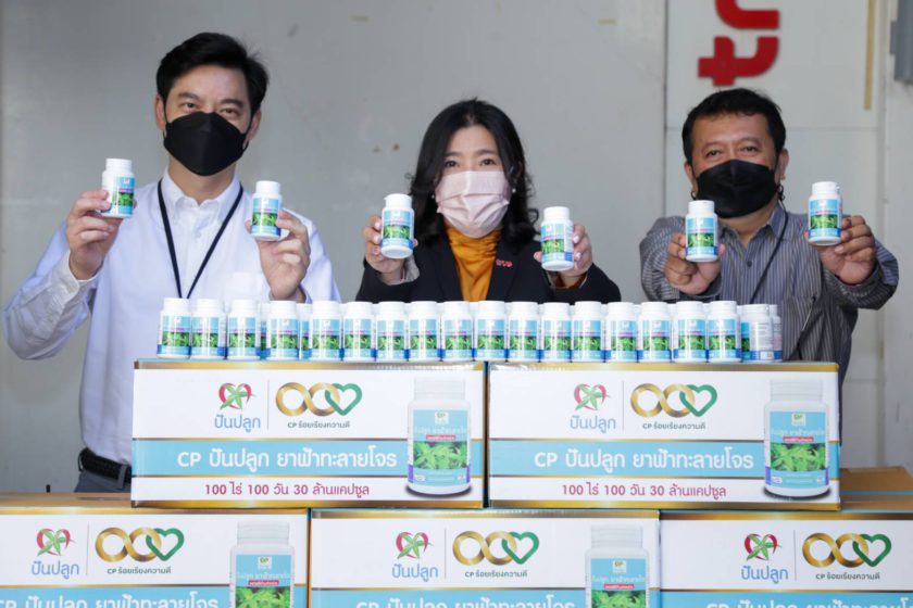 โครงการ ซีพี ปันปลูก ฟ้าทะลายโจร เป็นโครงการตามเจตนารมณ์ของท่านประธานอาวุโส ธนินท์ เจียรวนนท์ ที่ต้องการเพิ่มโอกาสให้ประชาชนได้เข้าถึงยาสมุนไพรไทยเพื่อใช้เสริมภูมิคุ้มกันป้องกันโควิด-19 โดยจัดพื้นที่ปลูกต้นฟ้าทะลายโจร จำนวน 100 ไร่ ที่ศูนย์วิจัยแสลงพัน และฟาร์มคำพราน จ.สระบุรี ที่ได้การรับรองมาตรฐานการปฏิบัติทางการเกษตรที่ดี (GAP) จากกรมวิชาการเกษตร กระทรวงเกษตรและสหกรณ์ นำมาผลิตเป็นยาฟ้าทะลายโจร 30 ล้านแคปซูล เพื่อมอบฟรีแก่ประชาชนชาวไทย และพนักงานในเครือซีพี