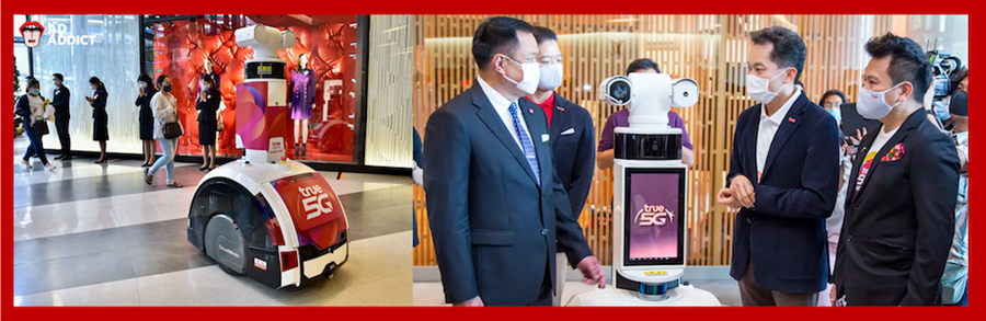 โดยเราจะพบเห็นนวัตกรรมและเทคโนโลยีของทรู เดินสอดส่องและให้บริการ เสริมความมั่นใจในห้างสรรพสินค้าชั้นนำโดยโครงการ “True 5G World of Retail” คือการสนับสนุนนวัตกรรมและเทคโนโลยีต่างๆ ของทรู เพื่อเดินสอดส่องและให้บริการ เสริมความมั่นใจในห้างสรรพสินค้าชั้นนำกับ True 5G Temi Thermal ScanBot ที่สามารถตรวจจับความร้อนและแจ้งเตือนอัจฉริยะ เมื่อมีผู้อุณหภูมิสูงกว่า 37.5 เข้ามาในพื้นที่ รวมทั้งติดตั้งเจลล้างมือฆ่าเชื้อแบบอัตโนมัติที่ด้านหลังหุ่นยนต์