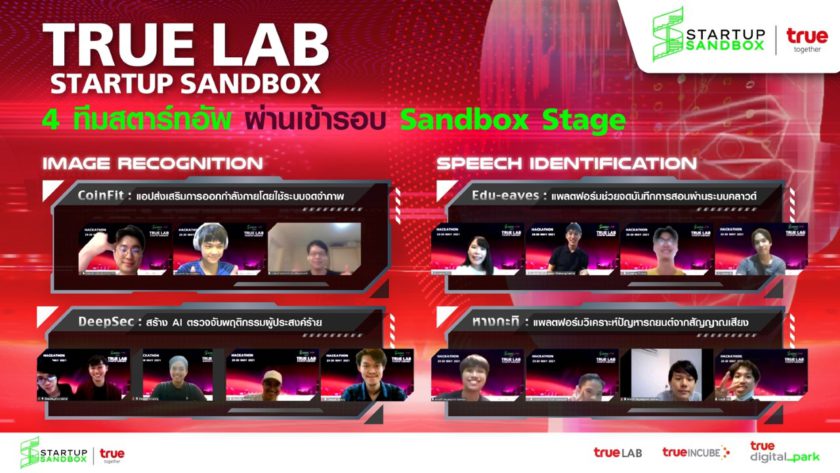 กรุงเทพฯ 28 มิถุนายน 2564 – กลุ่มทรู เดินหน้าโครงการ “ทรูแล็บ สตาร์ทอัพ แซนด์บ็อกซ์” (True Lab Startup Sandbox) ต่อเนื่อง เร่งปั้นนิสิตนักศึกษาสู่เส้นทางสตาร์ทอัพและผู้ประกอบการรุ่นใหม่ ร่วมขับเคลื่อนเศรษฐกิจดิจิทัลของประเทศให้ก้าวหน้า เผยโฉมสตาร์ทอัพ 4 ทีมสุดท้ายที่ผ่านการคัดเลือกในรอบ Hackathon ใช้เทคโนโลยี Robotic และ AI สร้างสรรค์ไอเดียผลงานแปลกใหม่