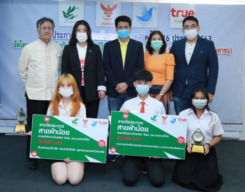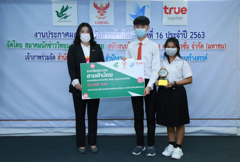 สมาคมนักข่าววิทยุและโทรทัศน์ไทย โดย คุณพีระวัฒน์ โชติธรรมโม นายกสมาคม และ กลุ่มทรู โดย คุณพิมลพรรณ ศิริวงศ์วานงาม ผู้อำนวยการด้านสื่อสารองค์กรและประชาสัมพันธ์การตลาด มอบรางวัล “สายฟ้าน้อย” ครั้งที่ 16 ประจำปี 2563 แก่นิสิตนักศึกษาที่ชนะการตัดสินจากการส่งผลงานเข้าร่วมประกวดสารคดีเชิงข่าวทางวิทยุกระจายเสียงและโทรทัศน์ ซึ่งในปีนี้มีผลงานส่งเข้าประกวดทั้งหมด 48 เรื่อง โดยผลงานที่ได้รับรางวัลดีเด่น ในการประกวดสารคดีเชิงข่าวโทรทัศน์ ประเภทข่าวทั่วไป ได้แก่ เรื่อง “เงินอุดหนุนเด็กเล็ก ฝนตกไม่ทั่วฟ้า” โดย ทีม Youngjustice จาก จุฬาลงกรณ์มหาวิทยาลัย และ เรื่อง “ถนนการท่องเที่ยวเชิงสุขภาพ(ซอยตาเอียด)” โดย ทีม 3 in 1 Production จาก มหาวิทยาลัยวลัยลักษณ์ ได้รับโล่เกียรติยศ พร้อมเงินรางวัล 20,000 บาท สำหรับรางวัลสารคดีเชิงข่าวโทรทัศน์ ประเภทวิถีชุมชน อัตลักษณ์วัฒนธรรม และสิ่งแวดล้อม รวมถึงรางวัลสารคดีเชิงข่าววิทยุ ไม่มีผู้ได้รับรางวัล